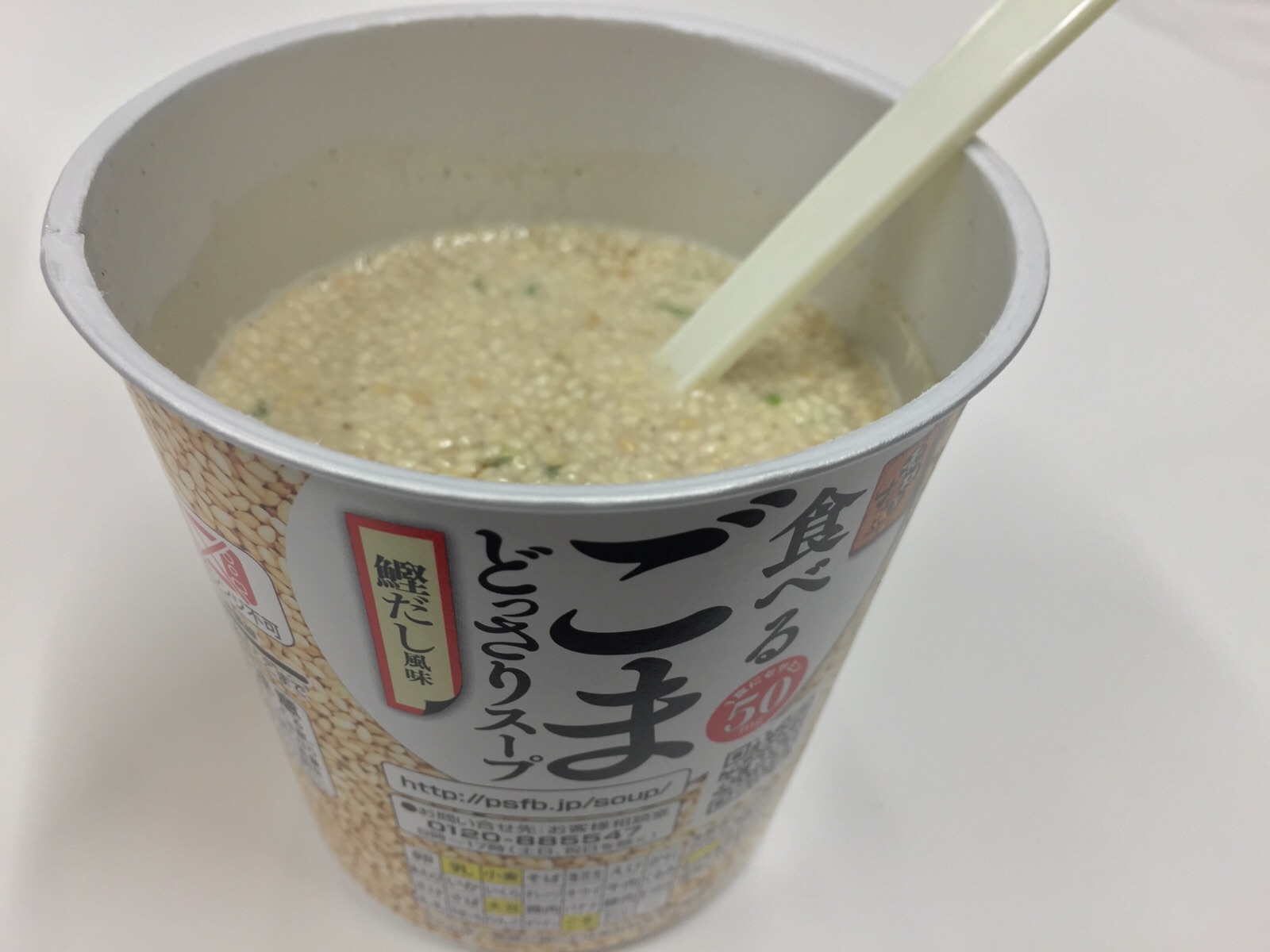 ゴマどっさりスープがお昼ごはんです。masukawa