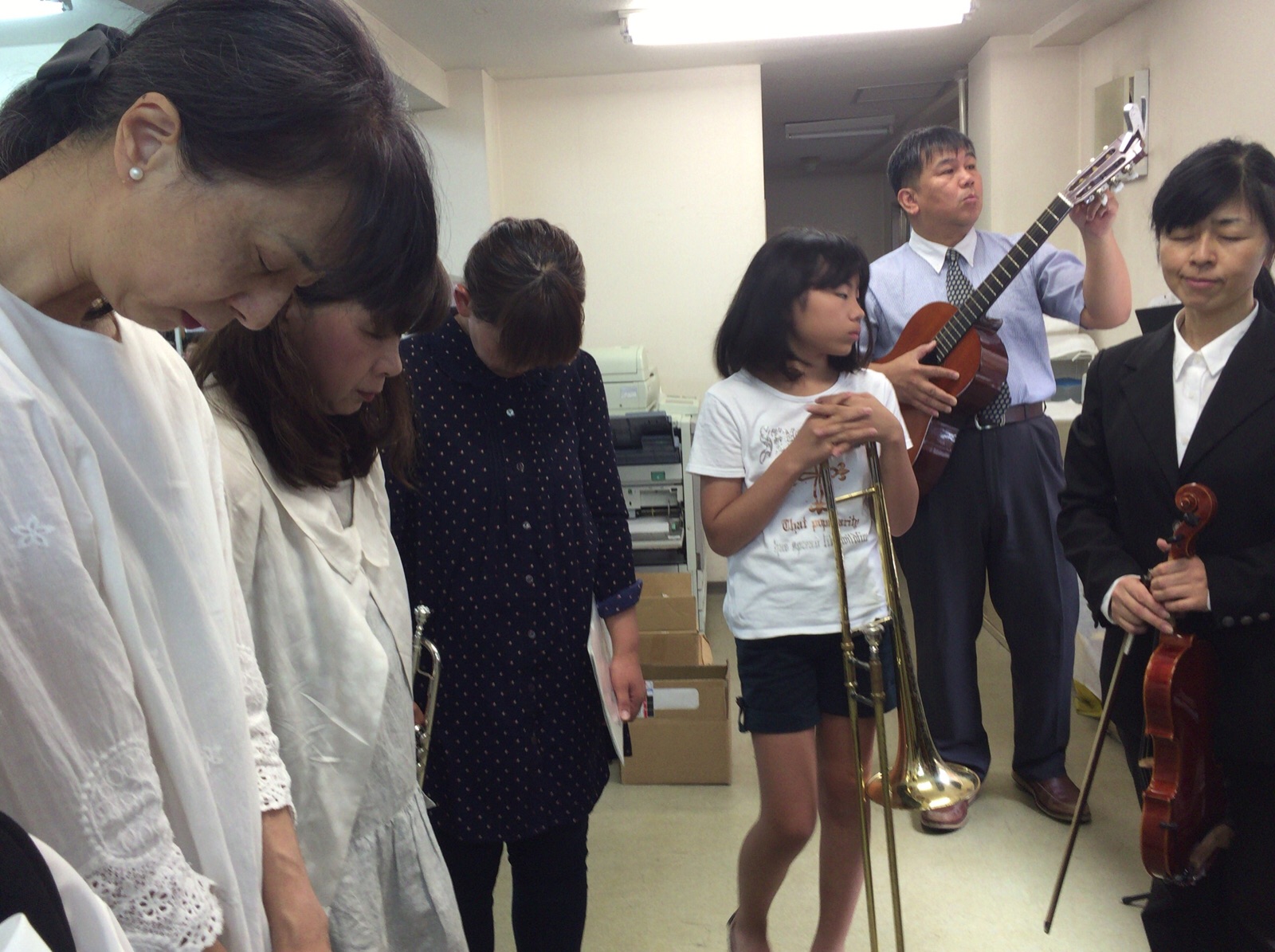 白や黒の服が多いのは、第2礼拝で特別賛美、夕方は、江古田の森でコンサートがあるからです。参加メンバーは色々。