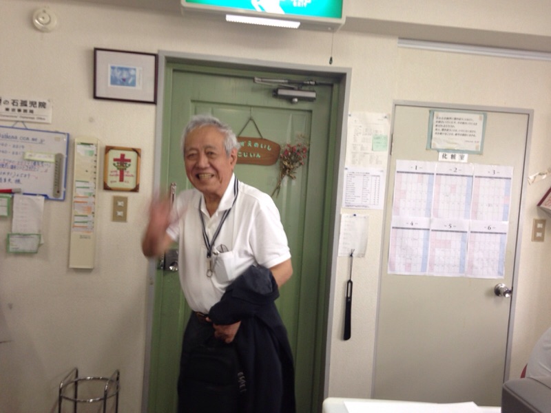 礎の石孤児院のお仕事を終えて、次は(株)アストンへ向かわれる前田さん。(yoshino)