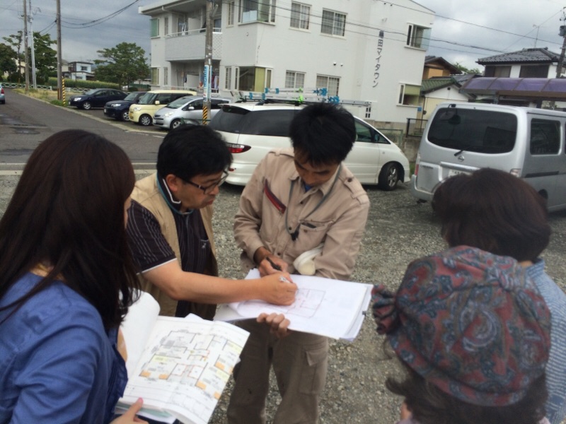 郡山のファミリーホーム建築の設計士さんの柳沼さん(左から二番目)。 非常に熱心に細かい部分も丁寧に対応してくださっています!