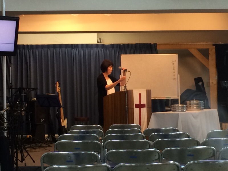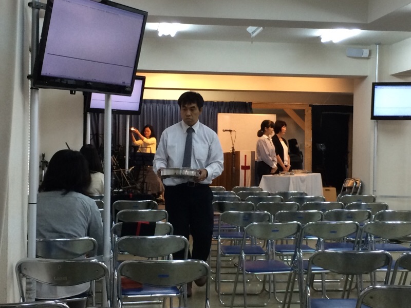 礼拝では聖餐式が行われてます。 奥で小代さん、聖餐を配っているのか、ブログを撮っているのか、どっちなんでしょう。 peter