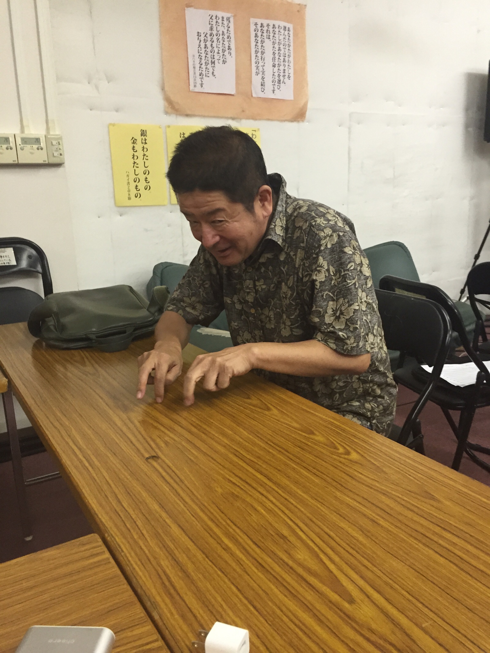 斜め45度の写真映りにこだわりを持つことを力説されたmurasamuさんが教会キャンプのミーティング&祈祷会に合流しました(笑)(^^)