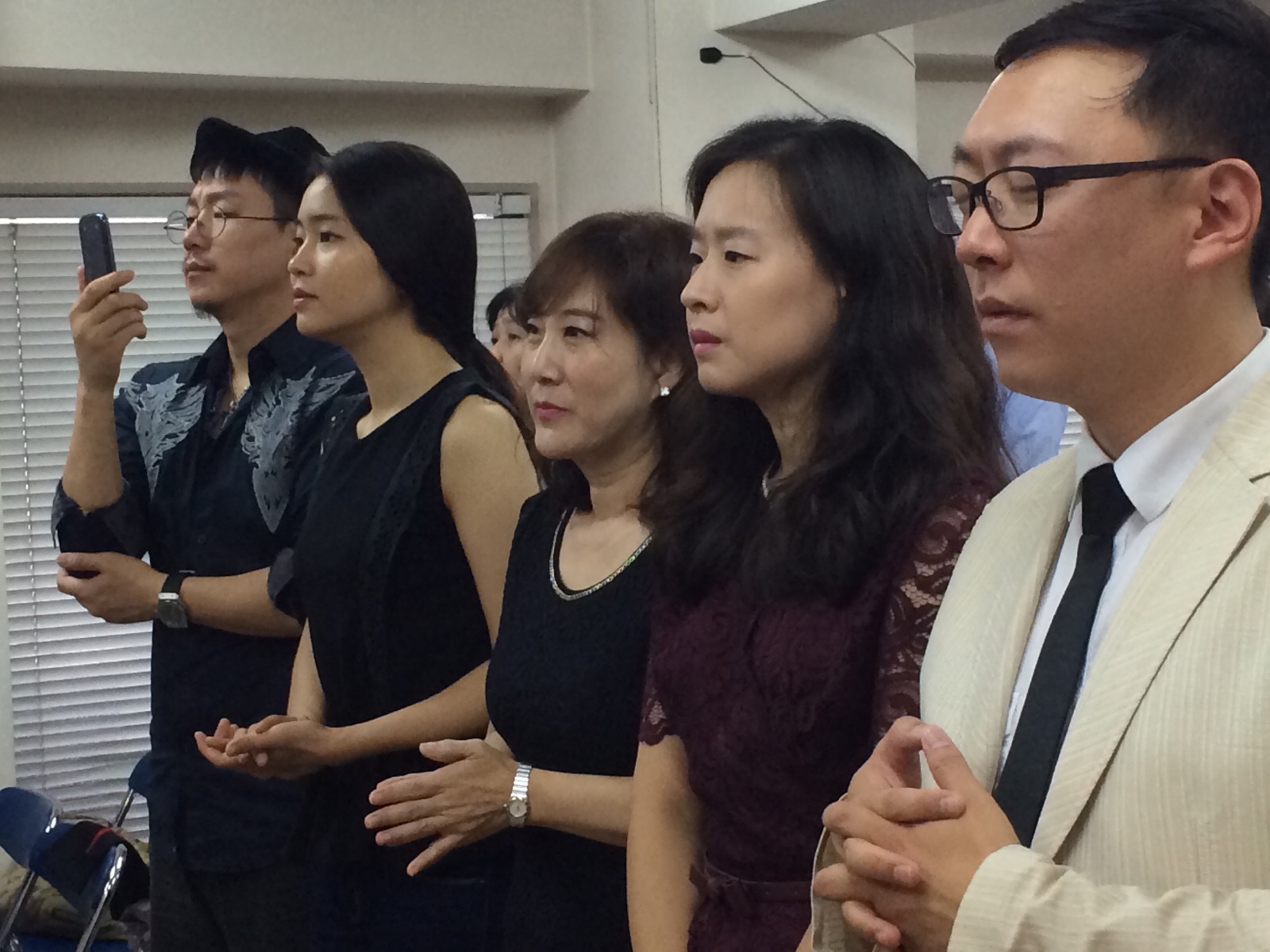 韓国の教会の皆様です。 秋元さんが紹介しておられます。 映画監督をされてる牧師先生、俳優さん、女優さん、舞踏家の方です。
