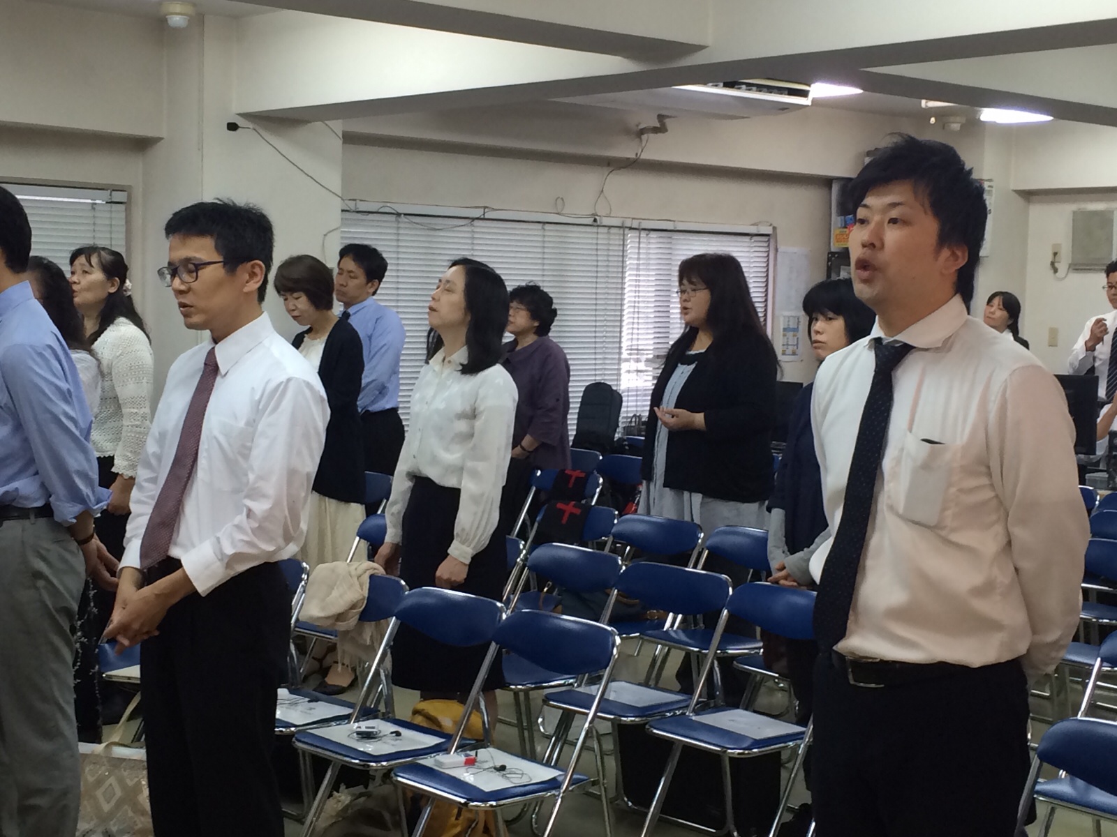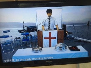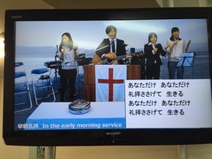 早朝礼拝スタート! 漆間さんが賛美リーダーです。