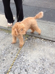 レオンの朝は早いです。さすが、主の十字架の家族…。朝ごはんも食べて、散歩のさいそくです。お姉ちゃん、眠い…でも、早天かねて、行ってきます。 シオン