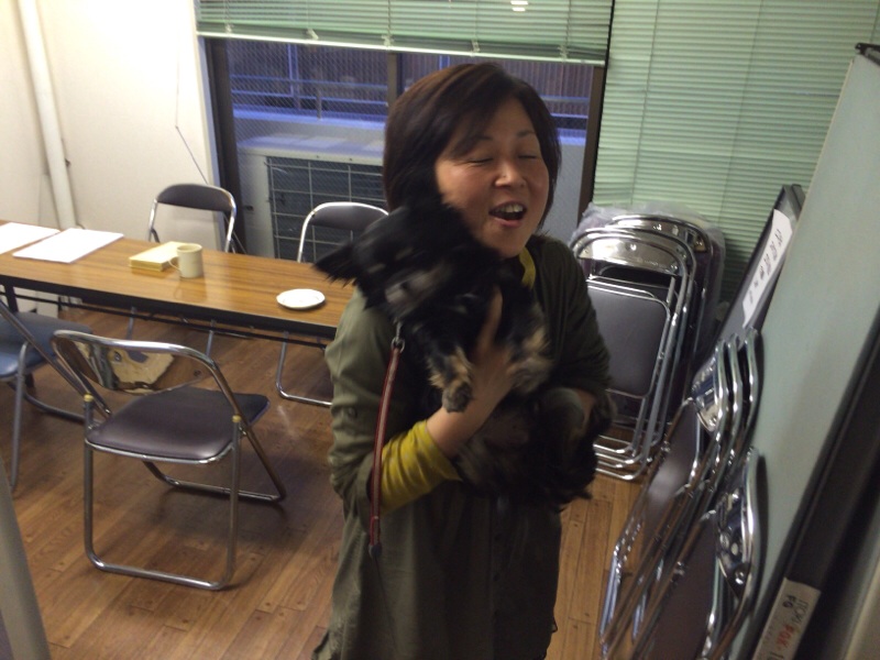 小林りょうこ牧師、犬が大好きだそうです! ギデオンくんに頬ずりしている感じです!