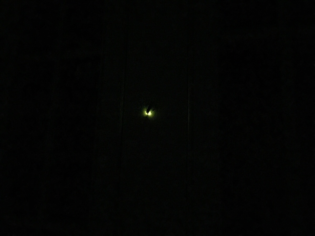 昨日の夜のお話で恐縮です。帰宅した折、ホタルがフワッと飛んで来て、玄関ドア、ここに止まり点滅してくれました。心に灯、暗闇に光、ありがたいです。