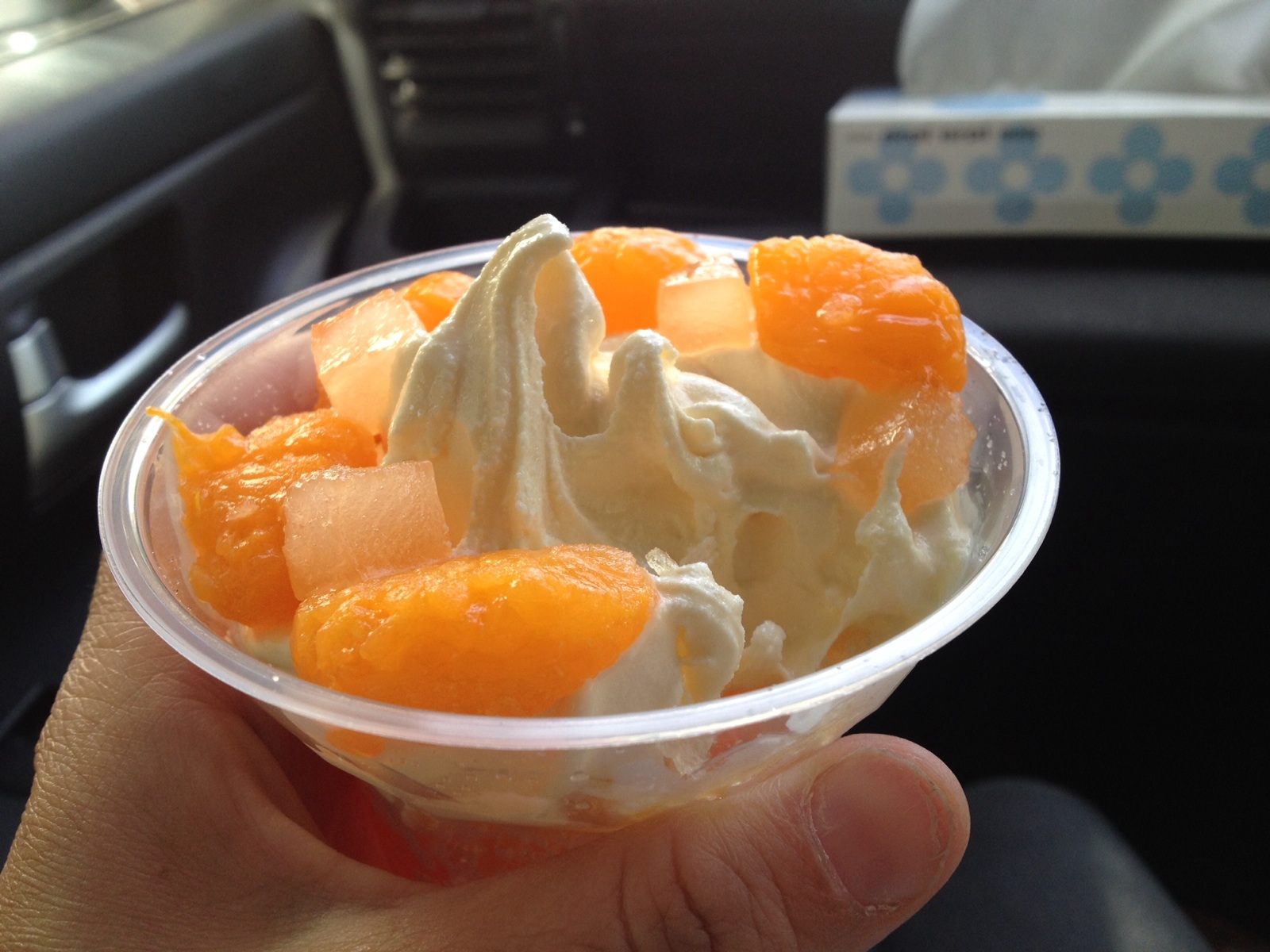 コンビニの冷凍みかんパフェ食べました。愛犬いた頃は食べ物なら何でも欲しがっていたので見つからないように食べてました。