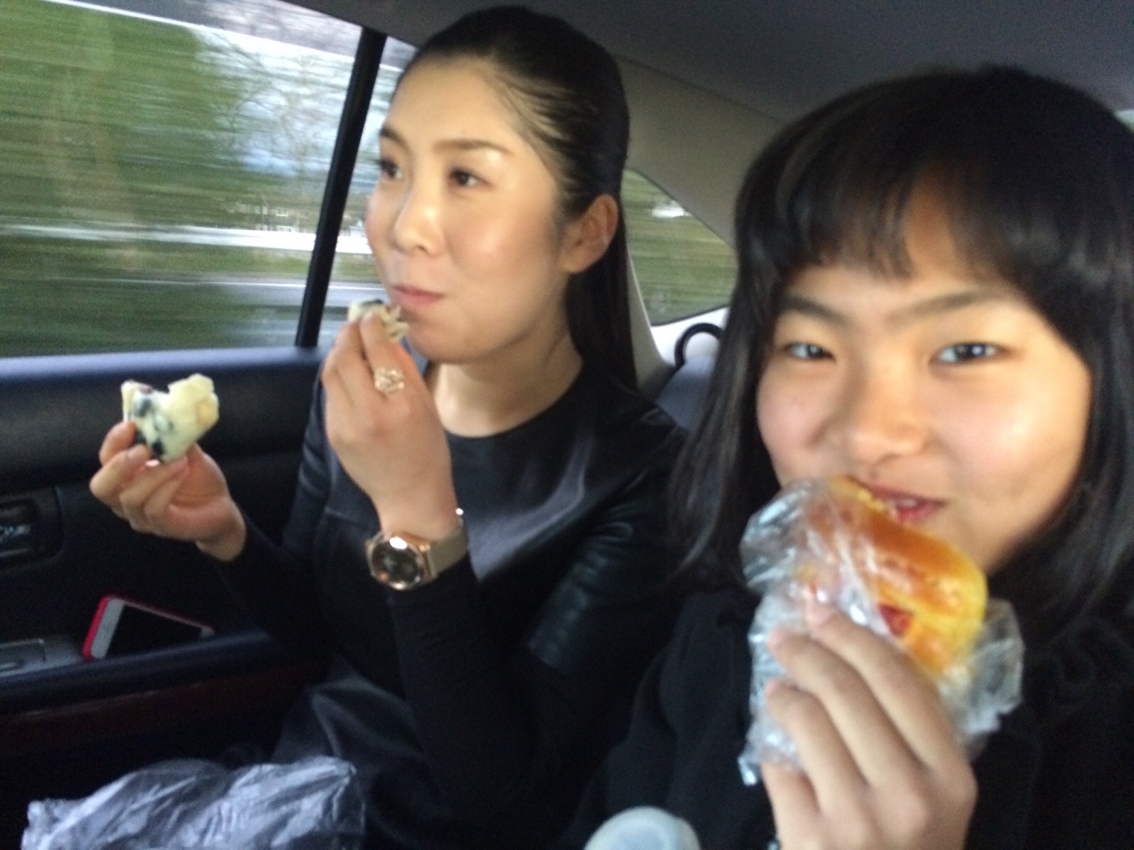 サービスエリアのパン屋さんにて! まだ食べるのか?!?! しるしと不思議