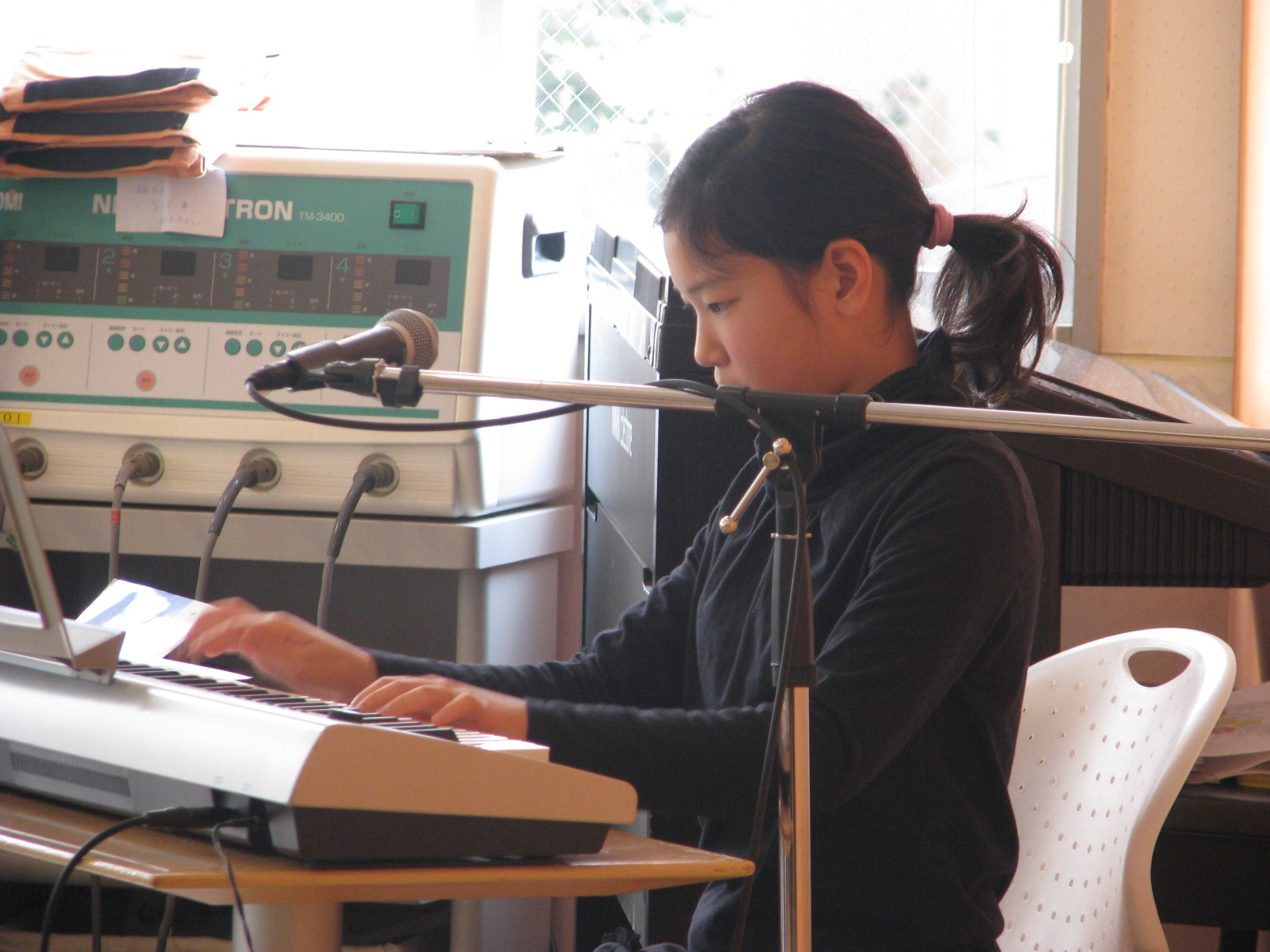 終わった後、みなさんの所に、ご挨拶に行くと、一人のおじいちゃんから、ハイタッチ!しょうと言われて、めぐみちゃんは照れながらしていました。(*^_^*)