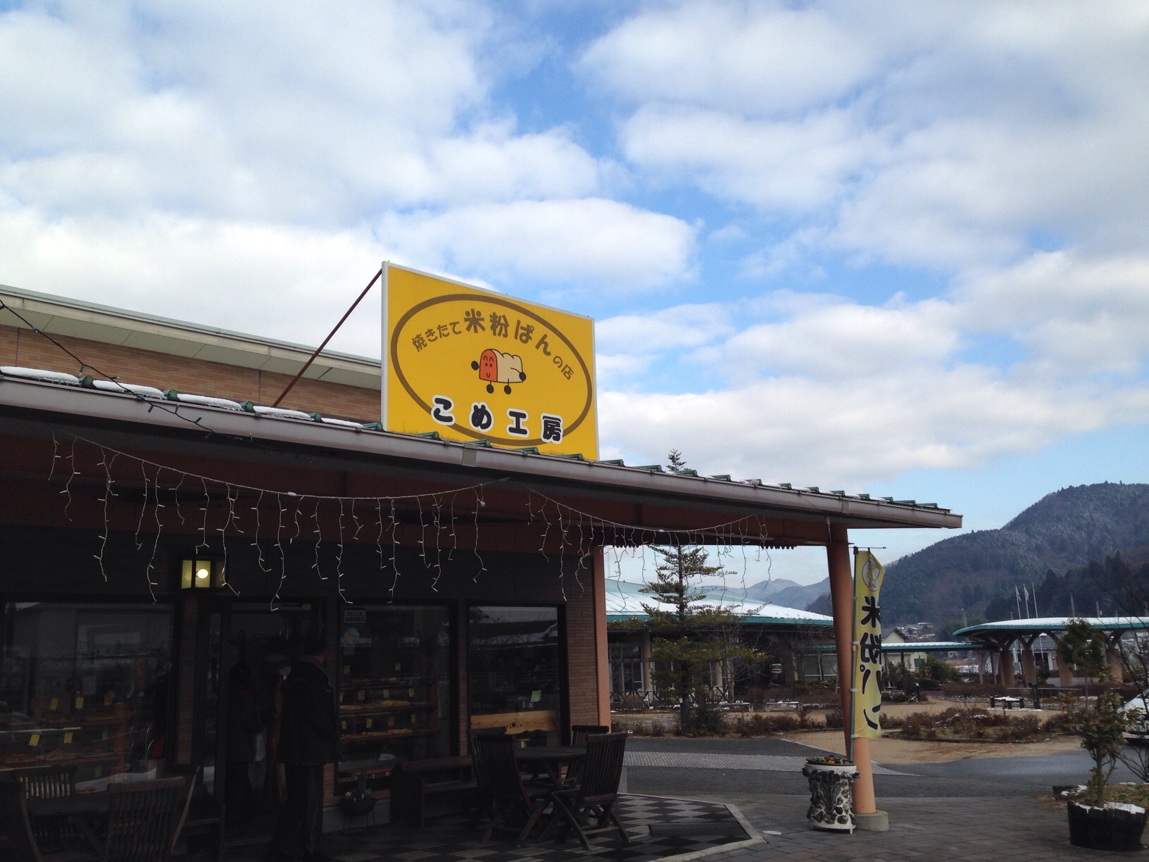 会場のすぐ隣りは道の駅でした。こちらも雪がありました。米のパンが名物です。