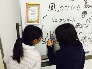 毎月の教会コンサート。子供達が絵を描いてくれています。