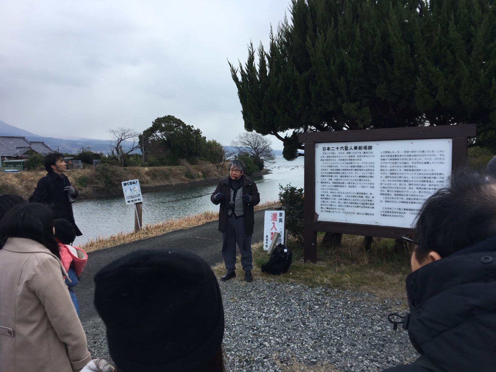 賛美しイエス様を述べ伝えながら殉教の旅を歩んだ26聖人。その中で、彼杵にいたるまでの俵坂峠は最も辛かった峠。誰にも人と会えず息が切れて賛美できない。そして峠を越えた時美しい大村湾の景色が。