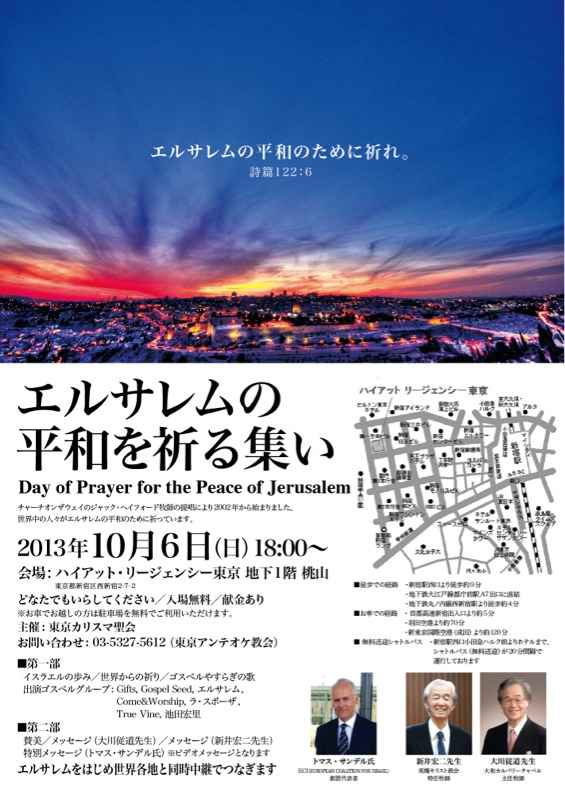 礼拝の中で、エルサレムの平和を祈る集いの報告がされました。こちらのチラシのデザインは、本日早朝礼拝メッセンジャーのサムエル笠原牧師です。エステル清水