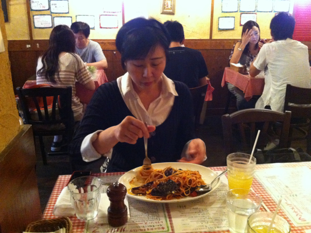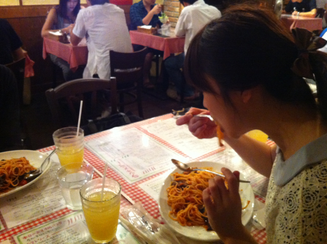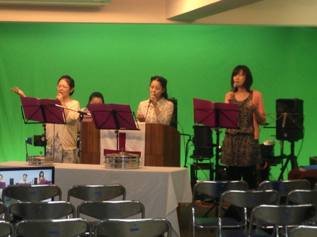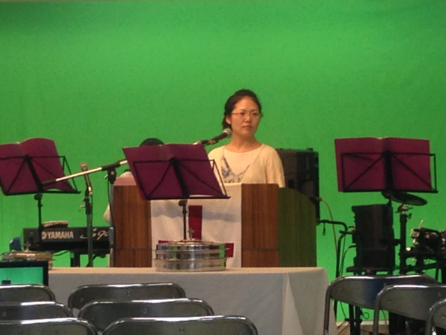 現在、英語の発音、特訓中の(インターナショナル礼拝司会の)小代さん。