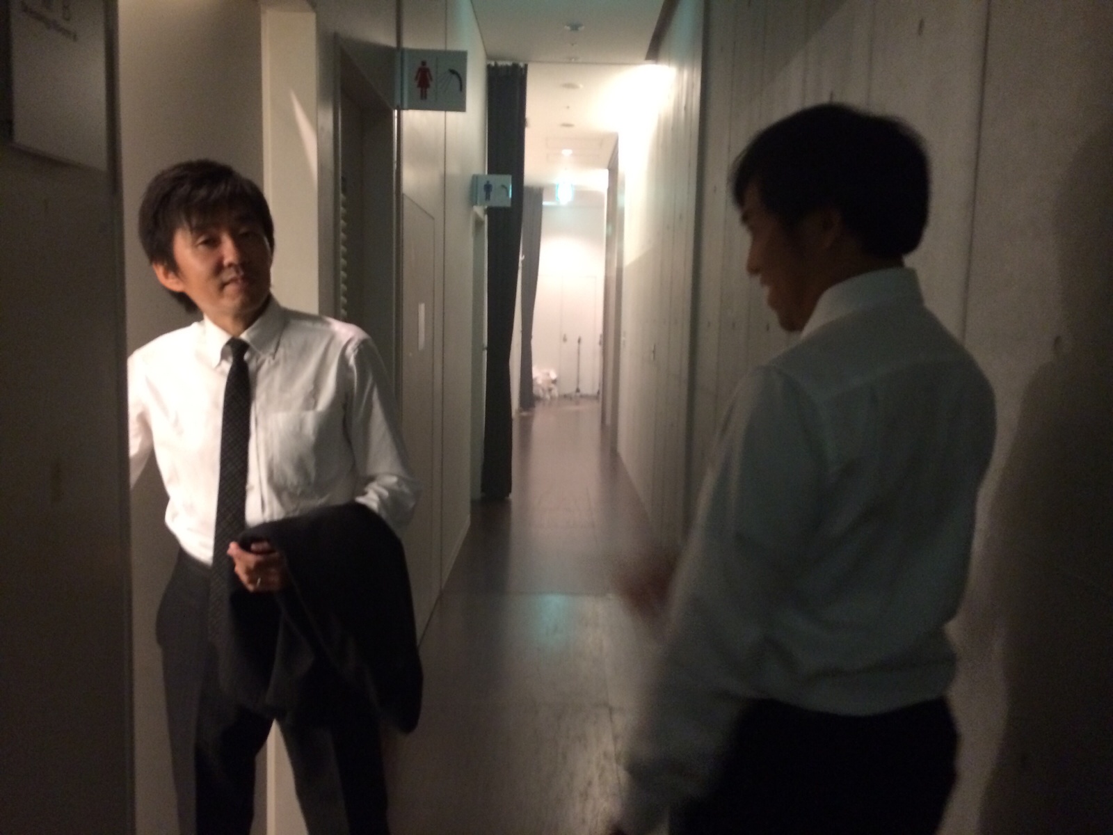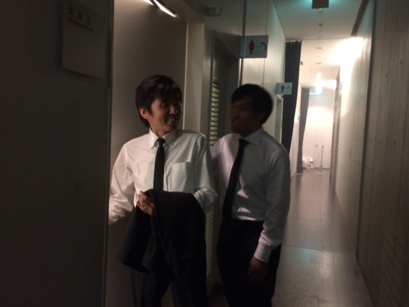 なにやら楽しげな(怪しげな?)お二人。 GiftsのひささんとTrueVineの谷口さん。 「ゴスペルのご馳走、いただきま〜す」横尾