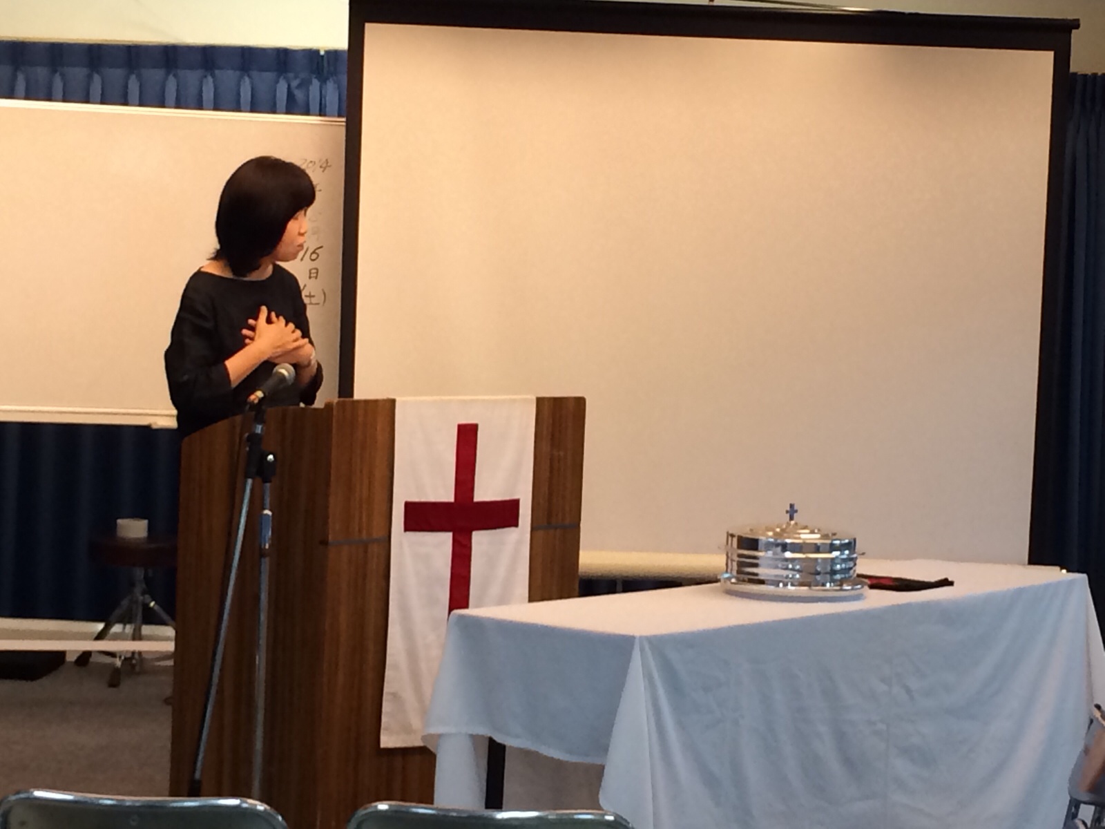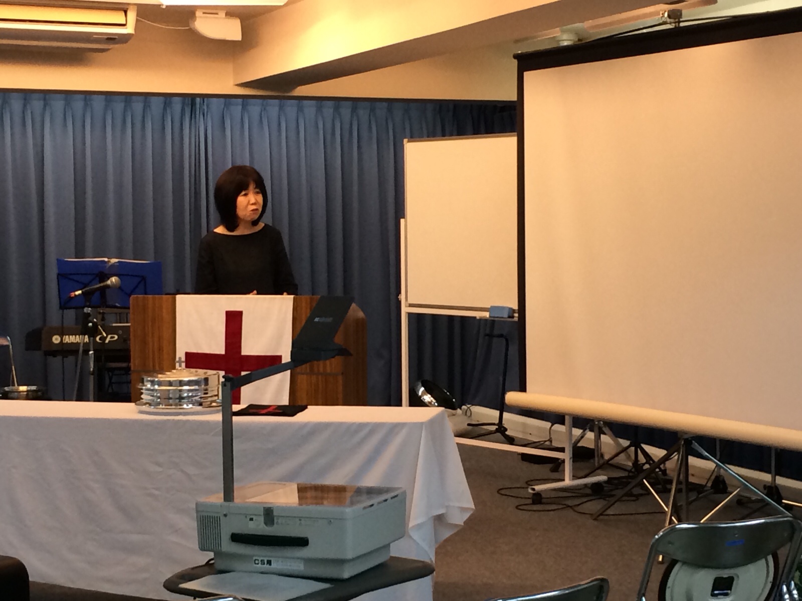土曜礼拝のメッセージ中でした。 荻原さんによるメッセージ。 「ゴスペルのご馳走、いただきま〜す」横尾