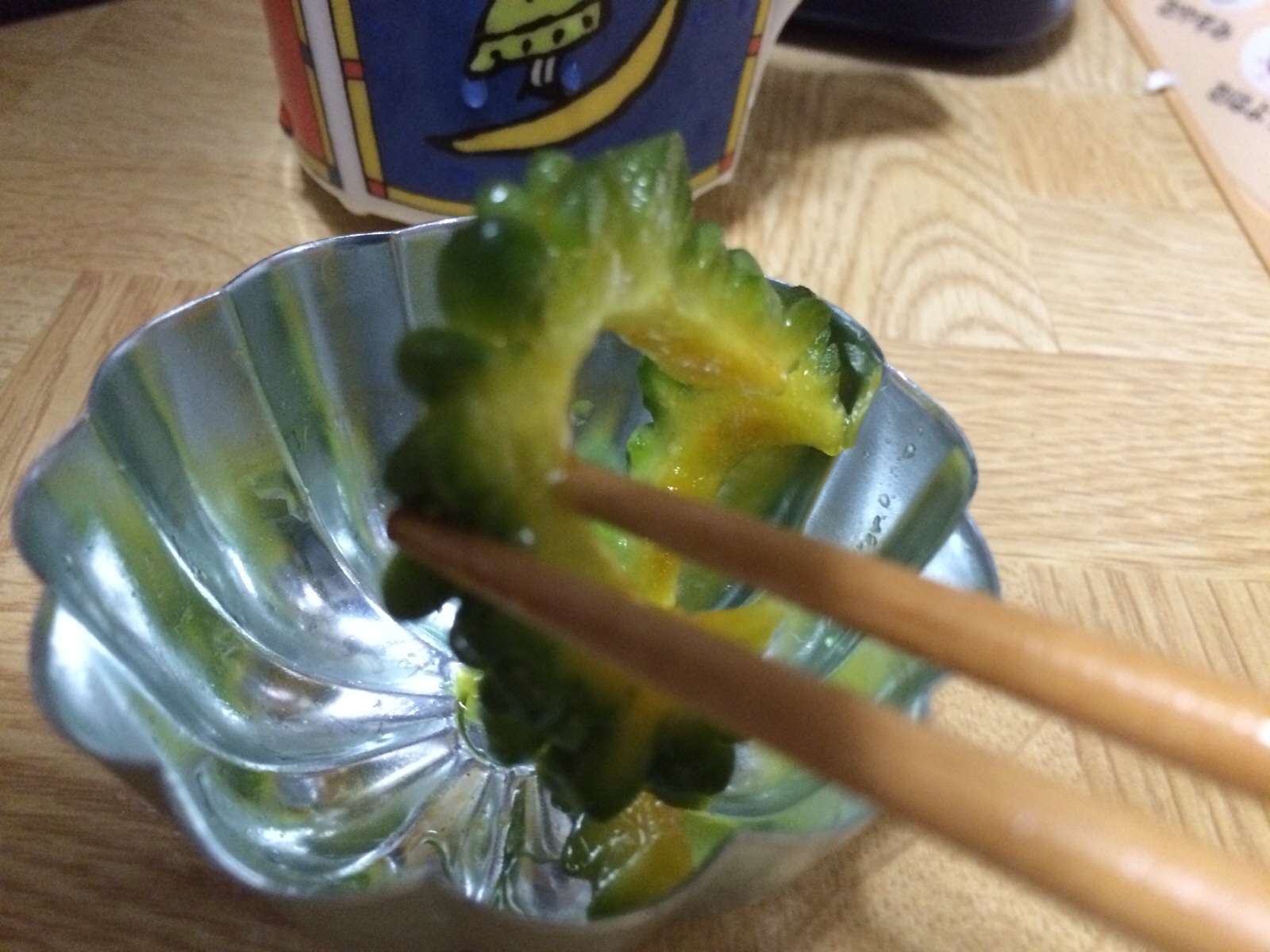 トントンと、ドアを叩く音。 小代さんでした。 ゴーヤの酢の物、もらいました。 「ゴスペルのご馳走、いただきま~す」横尾
