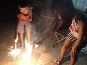 昨晩は涼しすぎてあの主人でもクーラーなしで夜を過ごすことができました! (写真:実家で花火!) 夫婦でどたばたラジオ まじきな