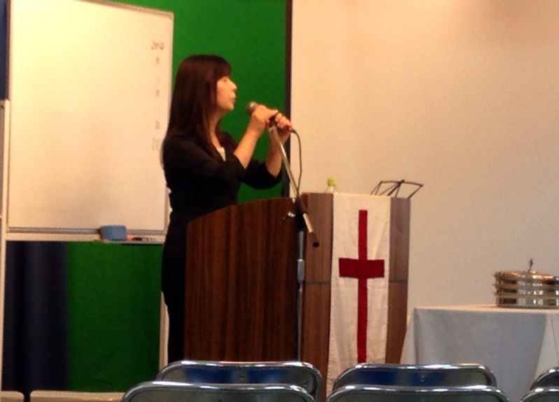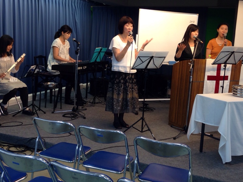 午後の礼拝スタート。 賛美リーダーはどたばたラジオの真境名牧師。