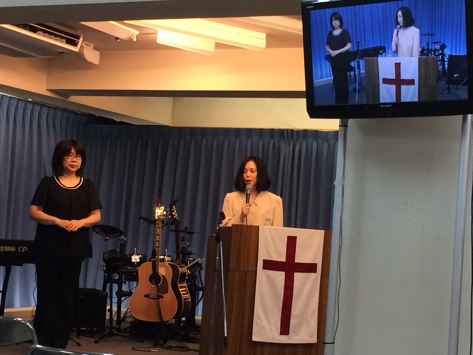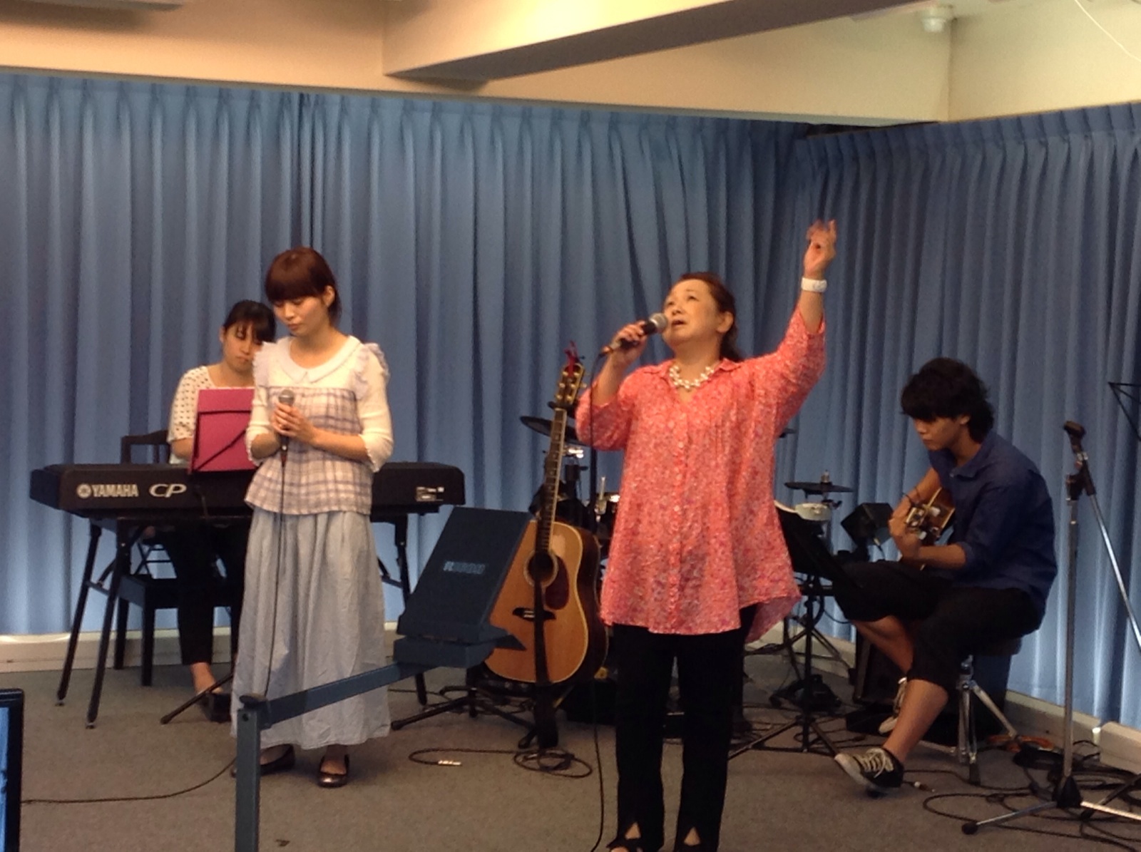 明日の準備しに会堂に行ったら、、、あれ?エステル清水さんしかいない… 「ゴスペルのご馳走、いただきま〜す」横尾