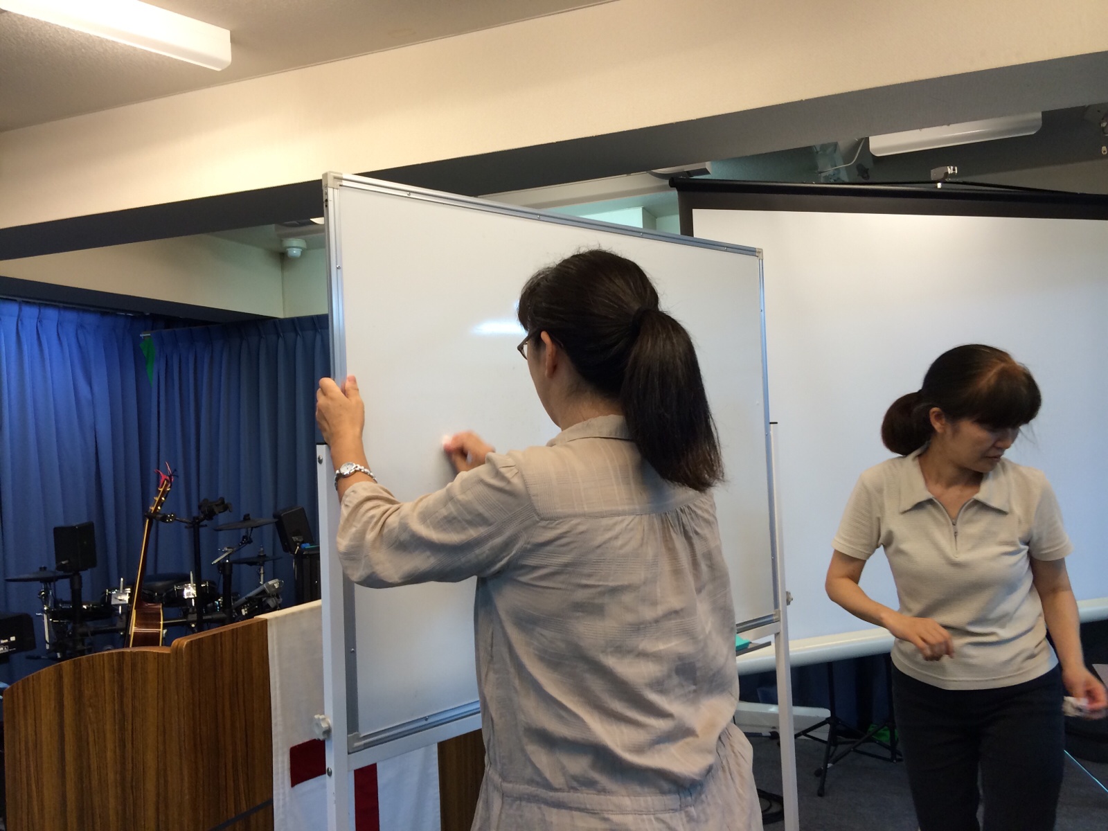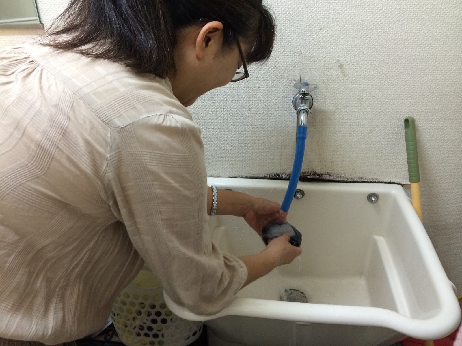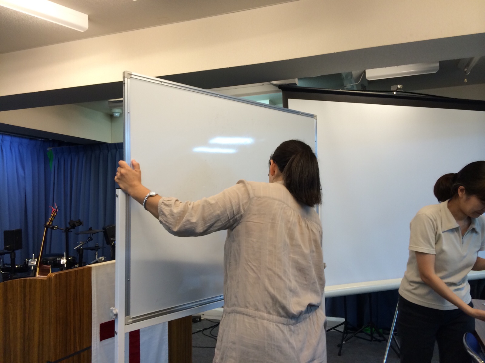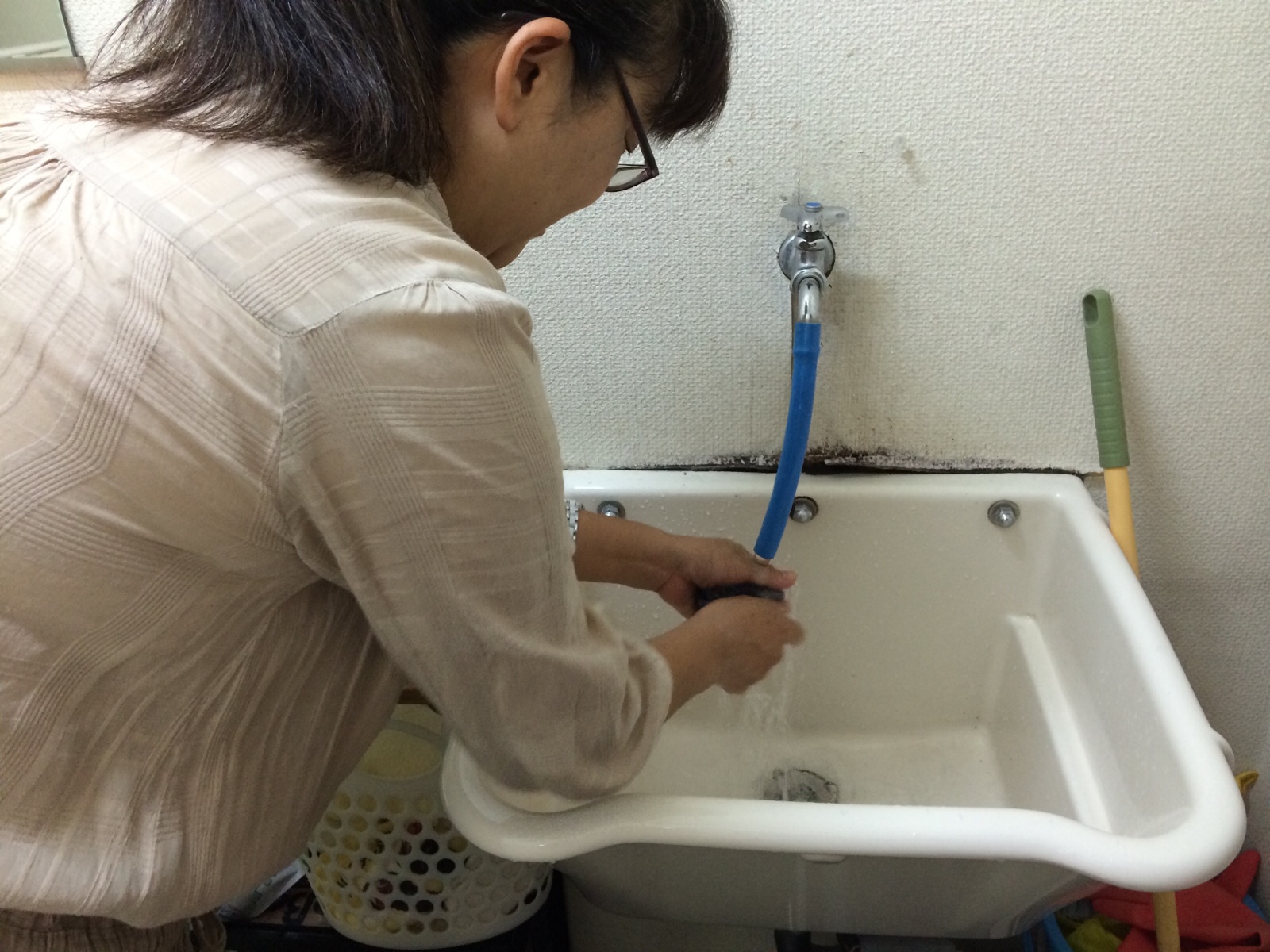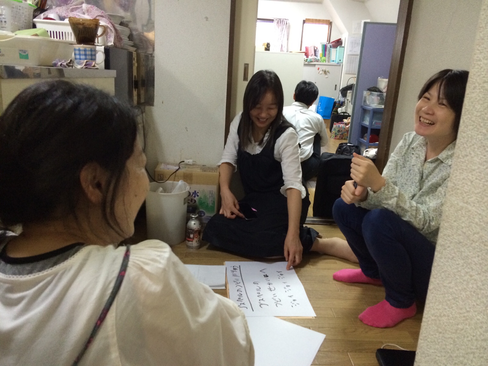 ジョイさんがホワイトボード消しの布を洗ってくださってます。 『いただきま〜す 横尾』
