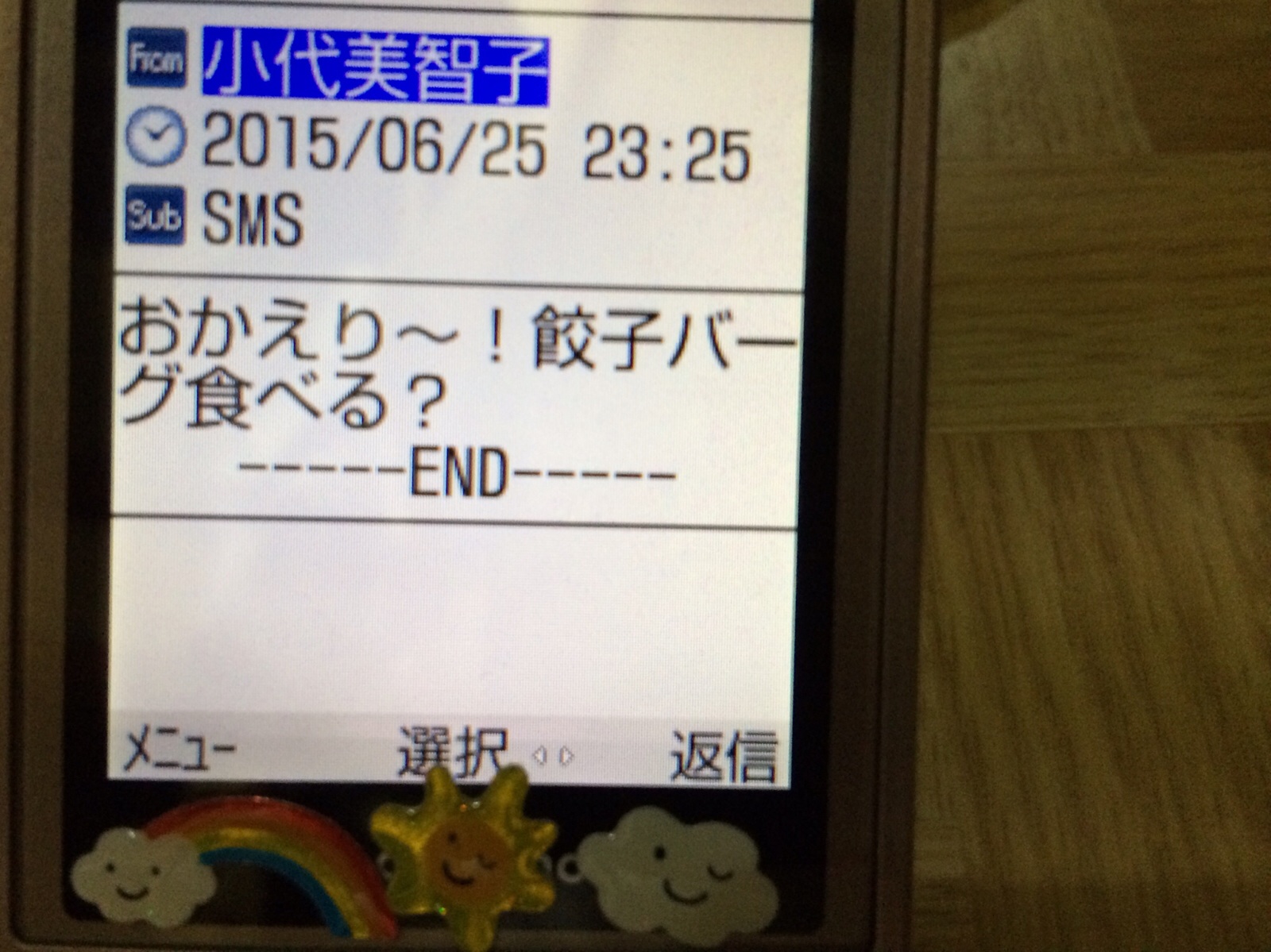 相方のおじろさんからメール来ました。 餃子バーグ???なんだかわからないけど、食べる、食べる〜!