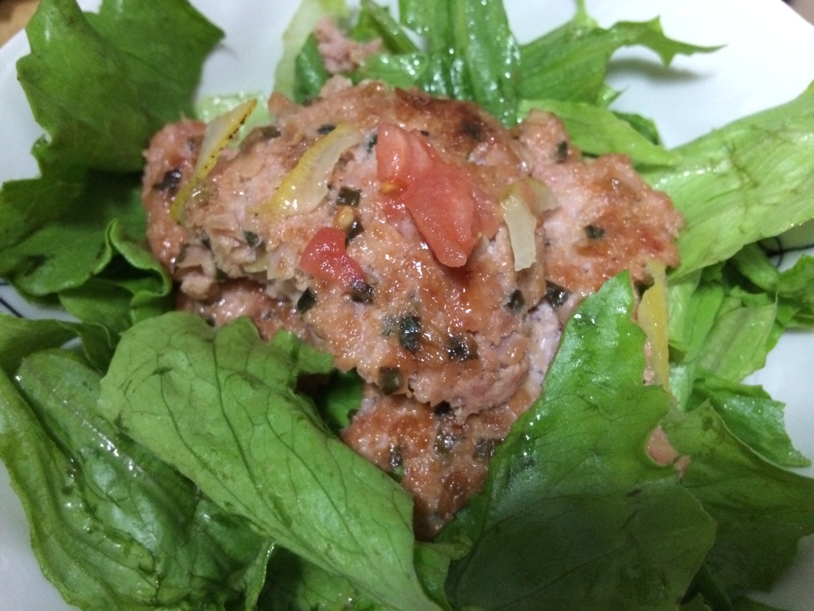 こちらが餃子バーグです。美味しいですっ! 創作料理。小代さん作。 『いただきま〜す 横尾』