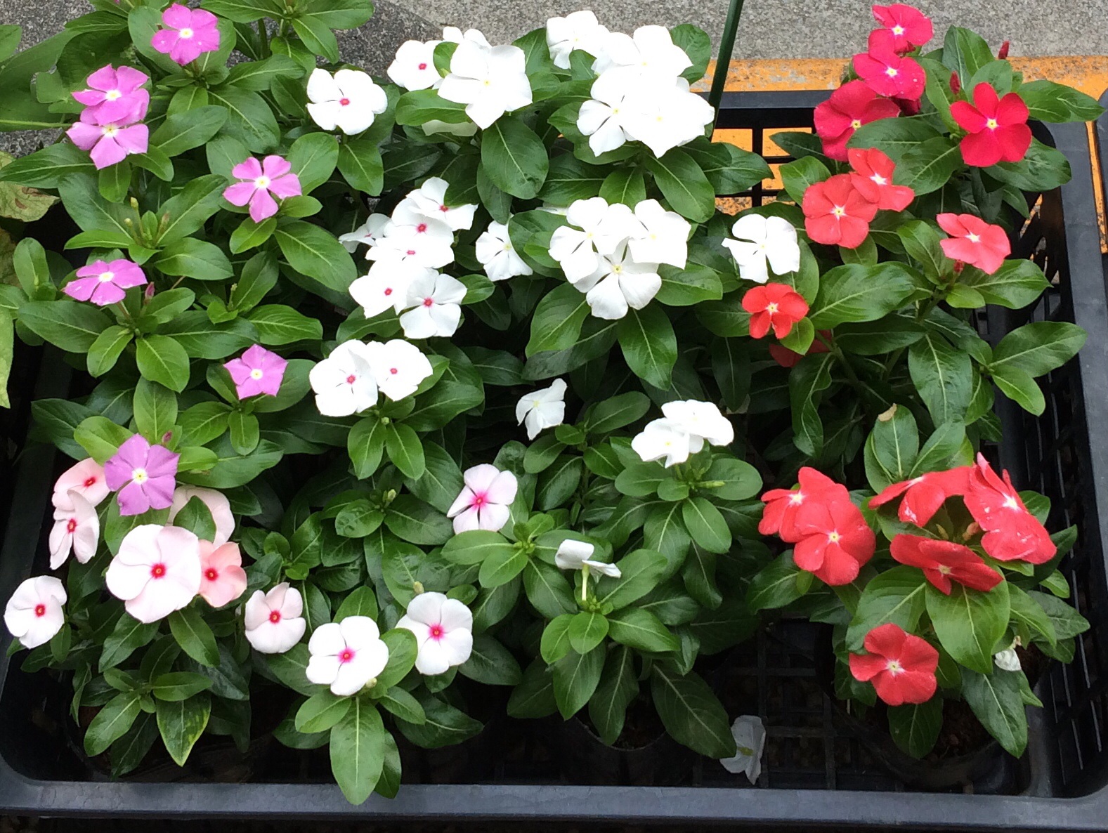 私は今回の植え替えで初めて・日日草を認識しました! (電車のドアに親近感のある…キモカワ?ステッカーがありました) ゴスペルでJoy joy joy‼︎ やまなか
