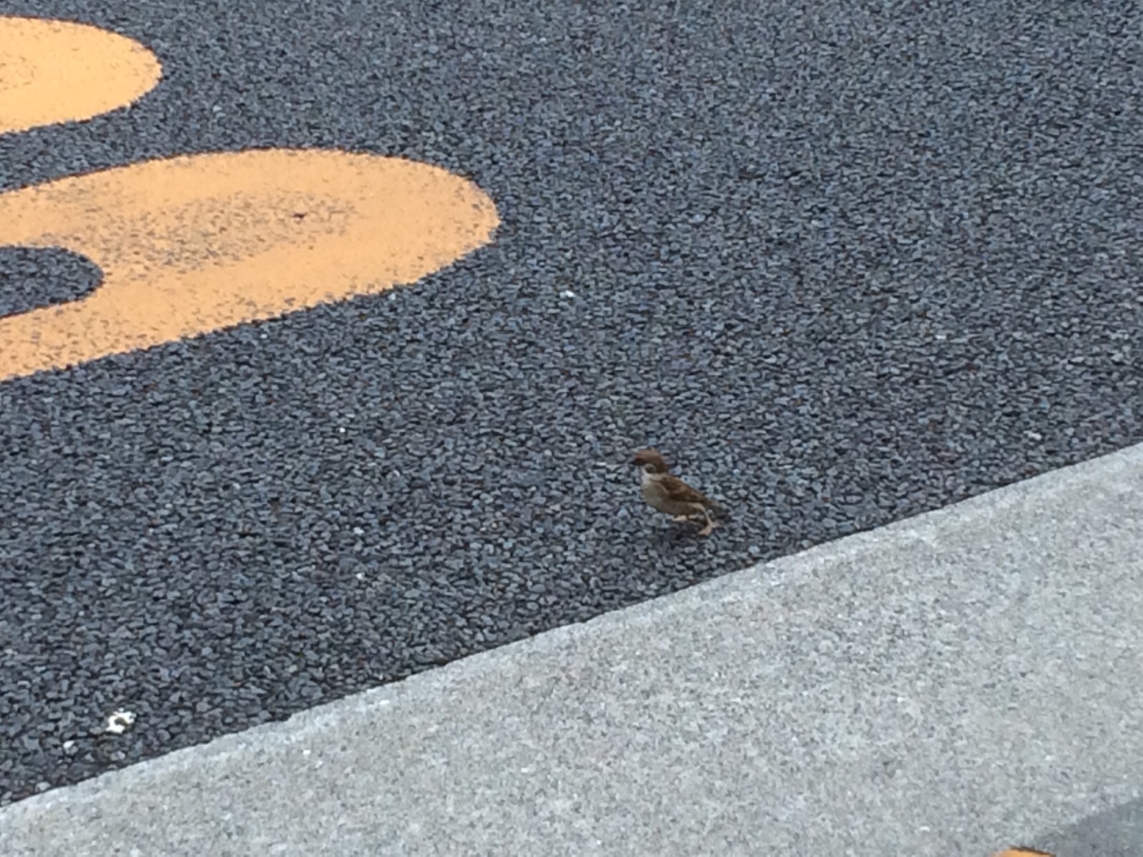 スズメが近づいて来た!と喜んでたら、近くにあった食べ物狙いでした。