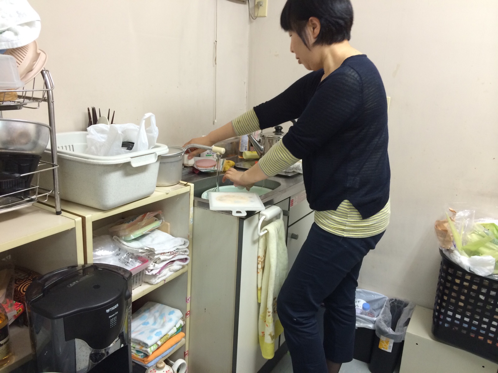 とテーブル拭いてます。 『いただきま〜す 横尾』