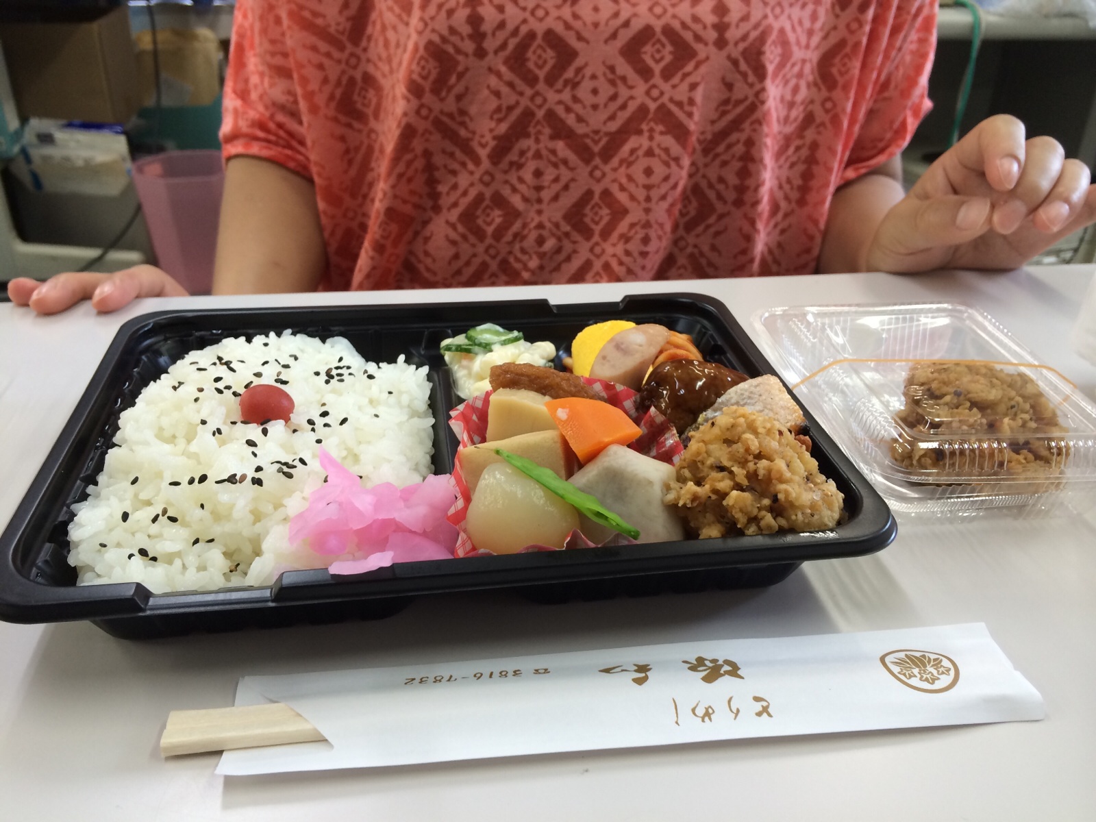 幕の内弁当。土屋さん。 「ご飯あります」というメールが行き違いになってしまいました。 (´・_・`) 「いただきま〜す 横尾」