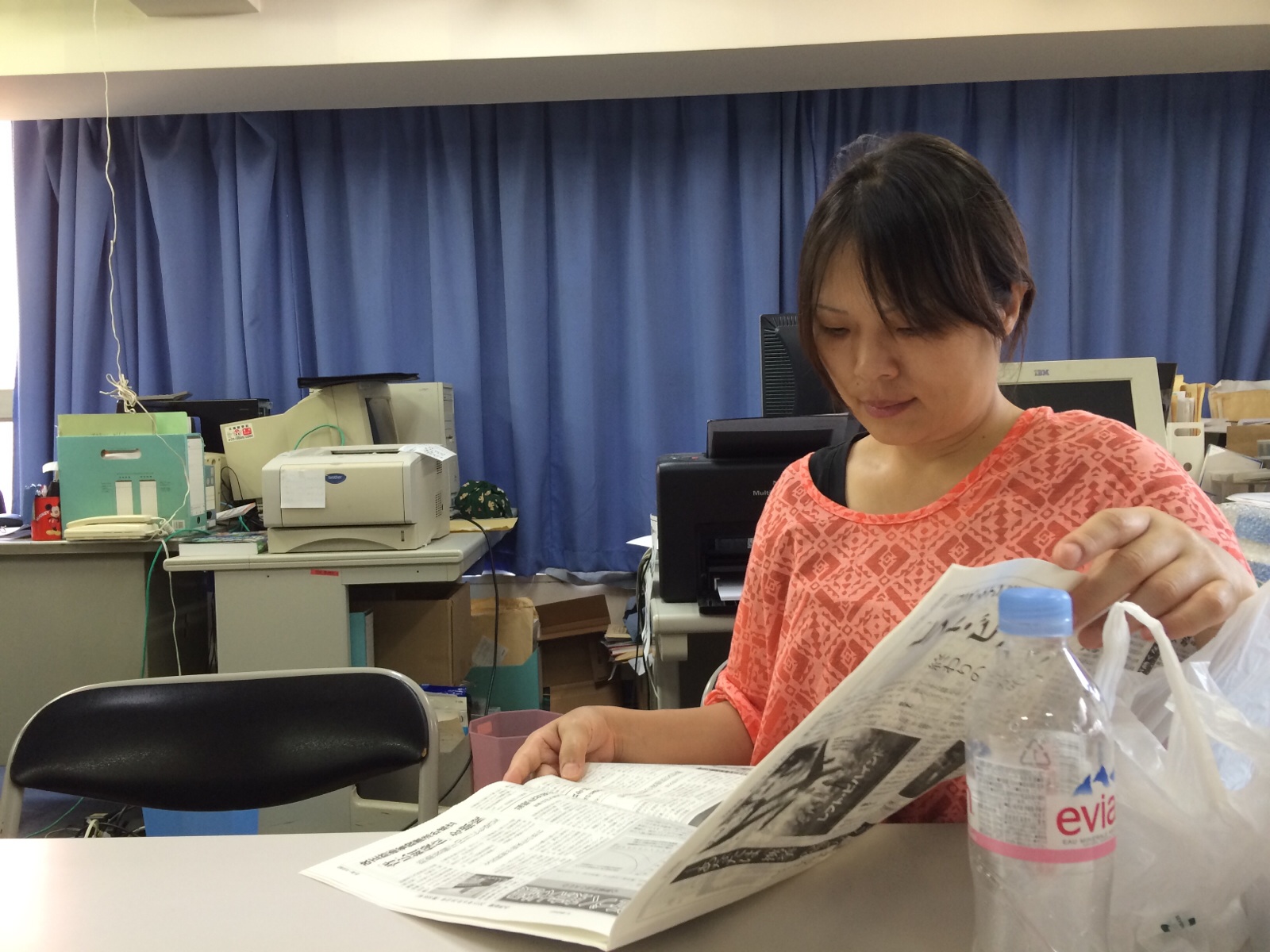 ふむふむ。 新聞読んでます。土屋さん。 「いただきま〜す 横尾」