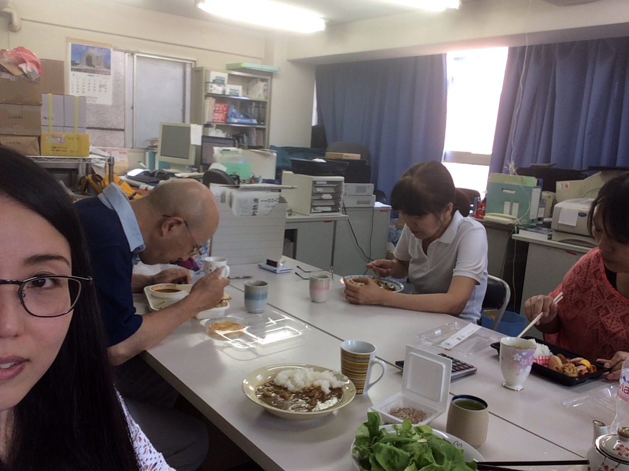 皆でご飯を食べてます。 「いただきま〜す 横尾」