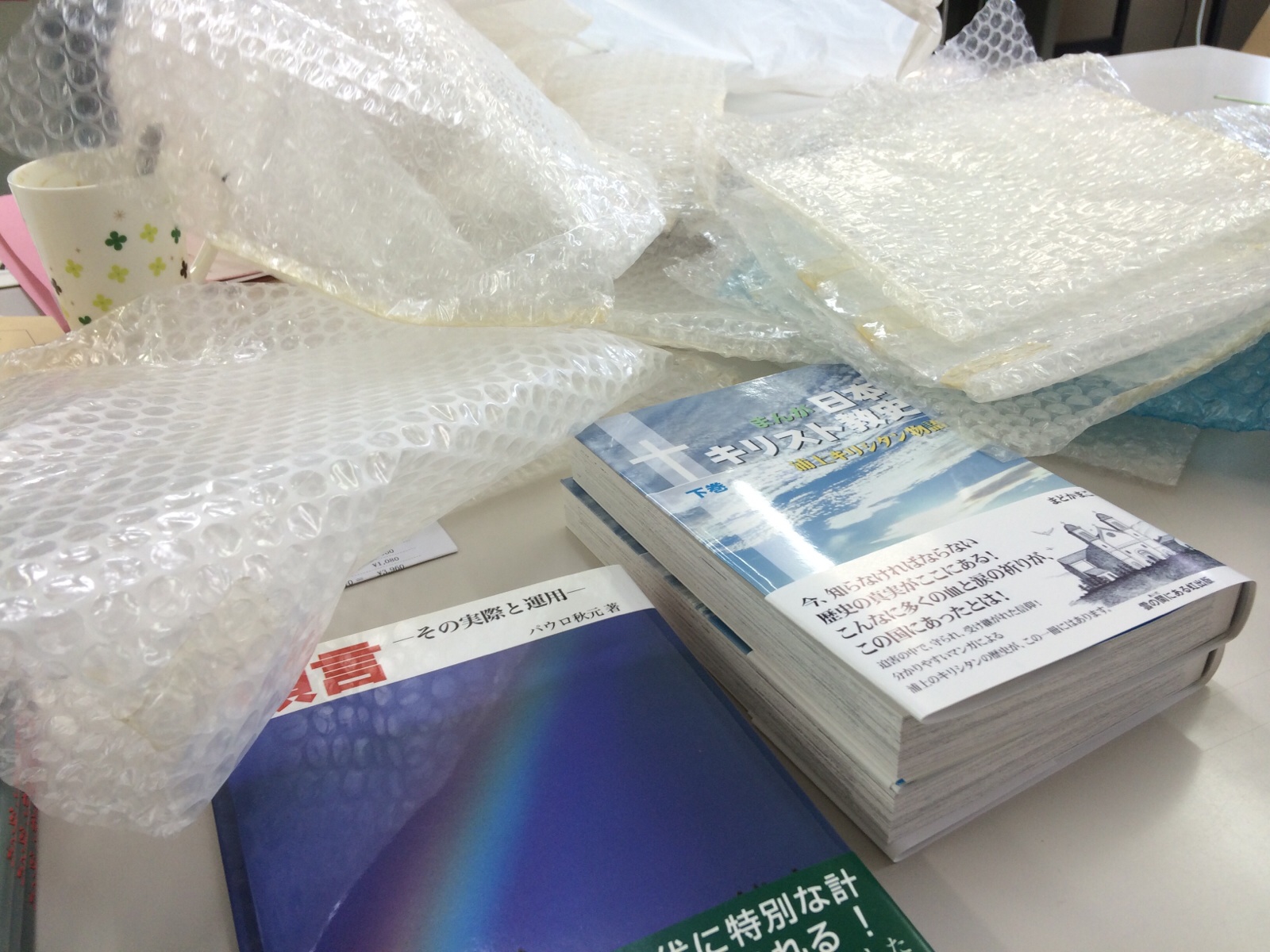 「教会に持っていく書籍を傷まないように包む紙がな〜い」と言っていたら、モーセ鈴木さんが古いプチプチを見つけてくださいました。 「いただきま〜す 横尾」