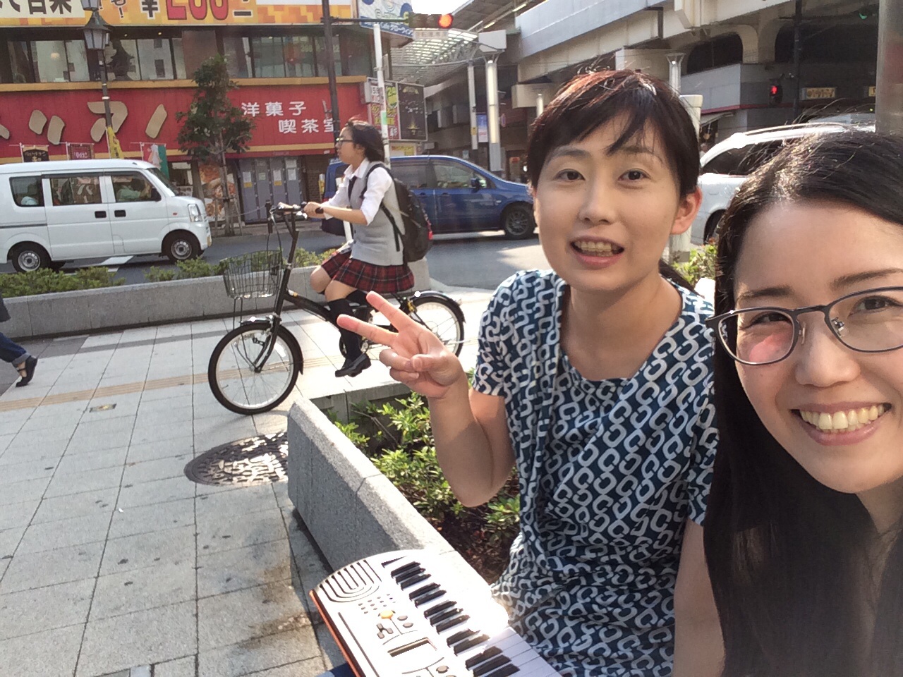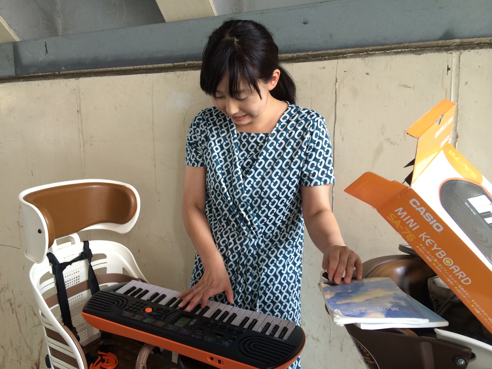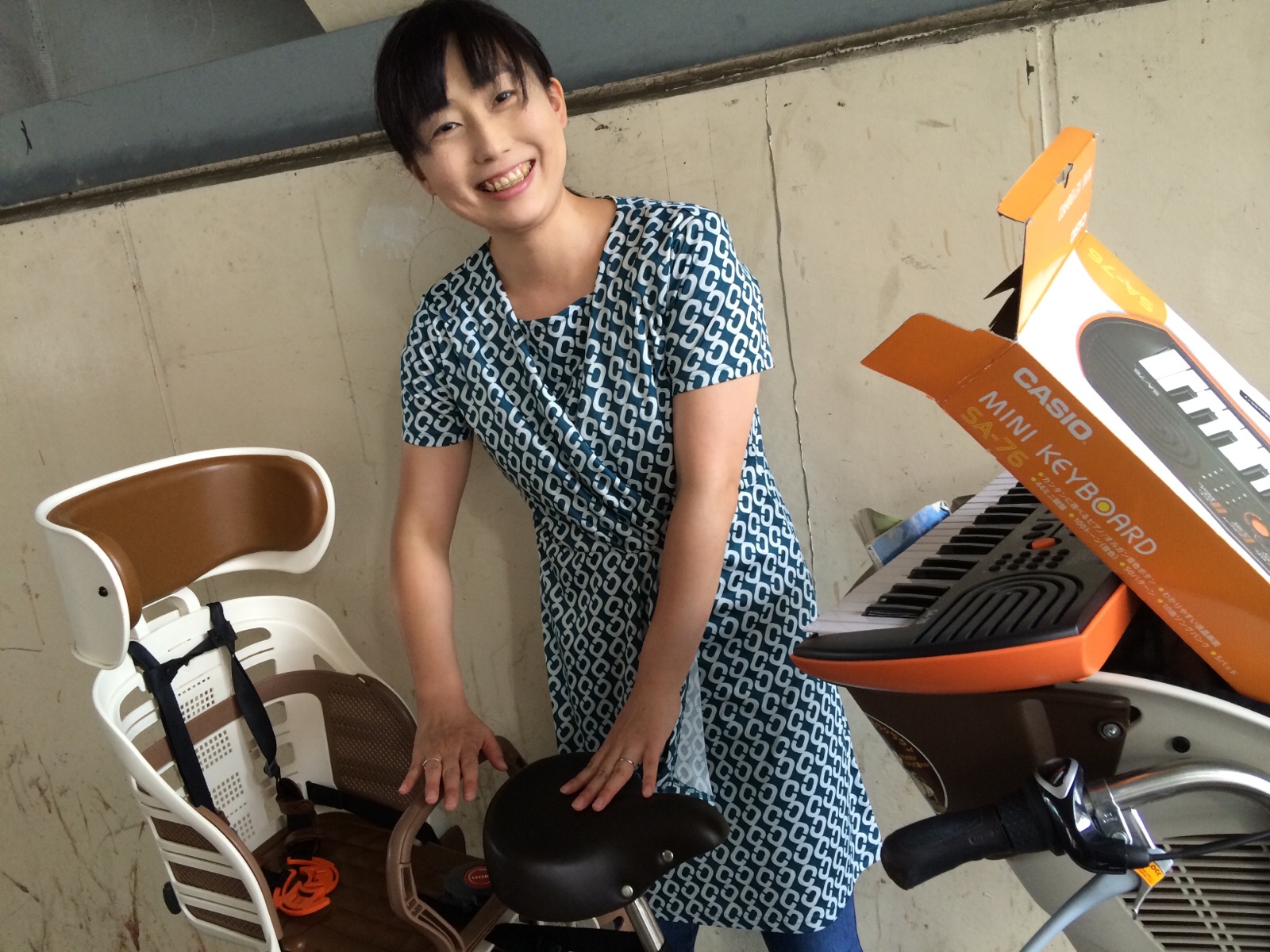 キーボードが自転車の上で動くので、場所を変えることに。 「いただきま〜す 横尾」