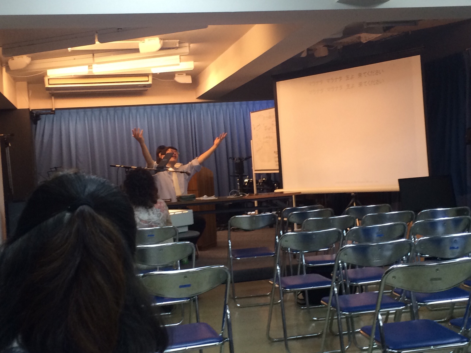 会堂では伝道師会が始まってます。