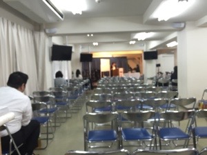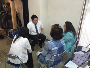 午後の神学校に向けてお祈り中。 真境名さん、祈りを導いています。