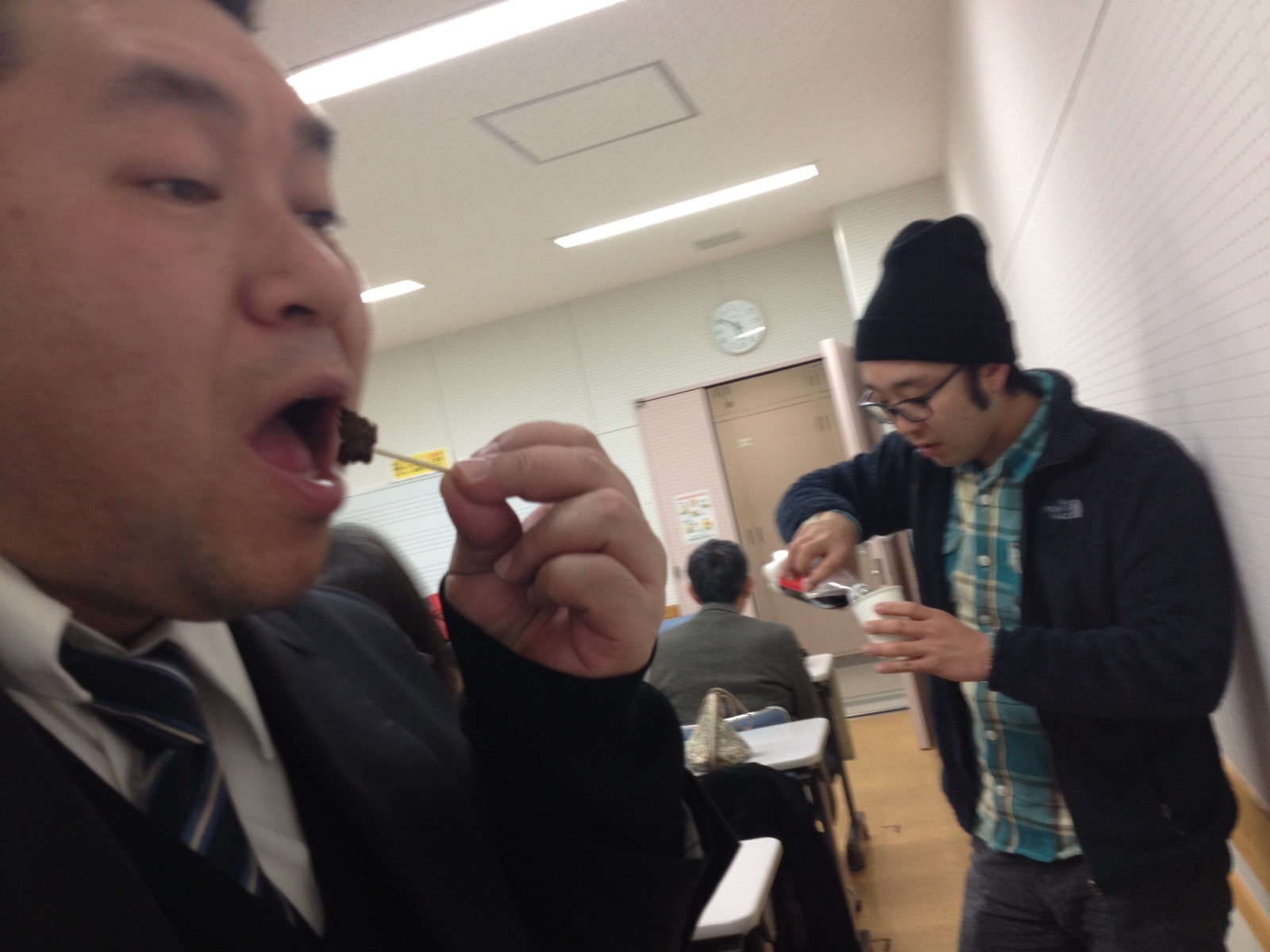 早速鹿肉を食べる真境名さんと 北海道限定飲料ガラナを飲むヨハネ君。 ウラノスJOY