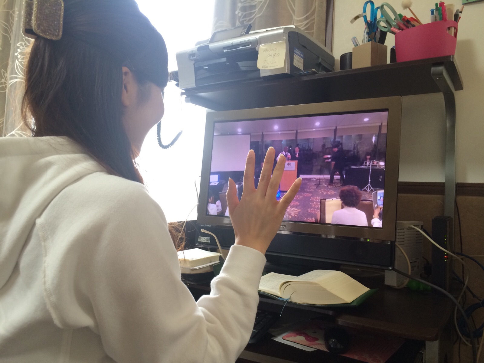 今日は現場の事務所にてPC作業中〜! スティーブさん!オンライン生中継見てますよ〜\( ˆoˆ )/ 四日市シオン教会