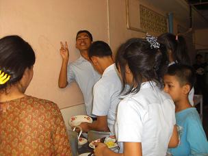 夕方、お腹を空かして帰宅した子ども達・・・。 ご飯に群がってますが、カメラ目線が一人だけはMです! 今日は、子ども達が大好きな魚のフライと青いマンゴーの付け合わせでした。