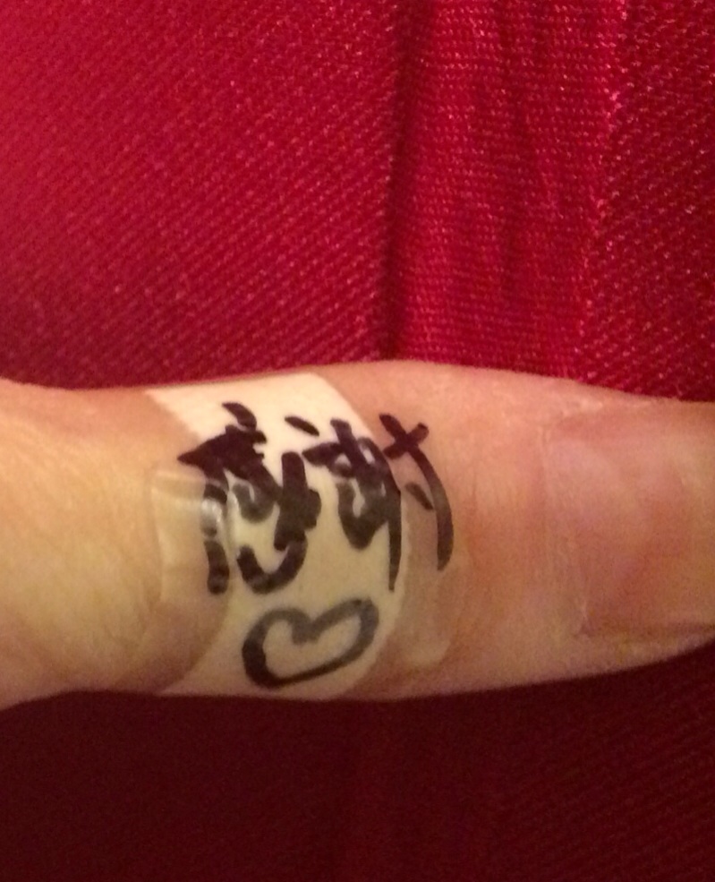 どんな小さな事でも、全てのことに徹底して神様に感謝する者になりたいです。忘れないように絆創膏を‼︎ ケガはしてません(^O^)/ 東京 三本松家