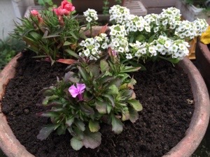 写真は、寄せ植えのお花ですが。。 夕方にお風呂掃除をしながら、 I Rejoice in the Lord を歌っていたら、喜びが溢れました♪
