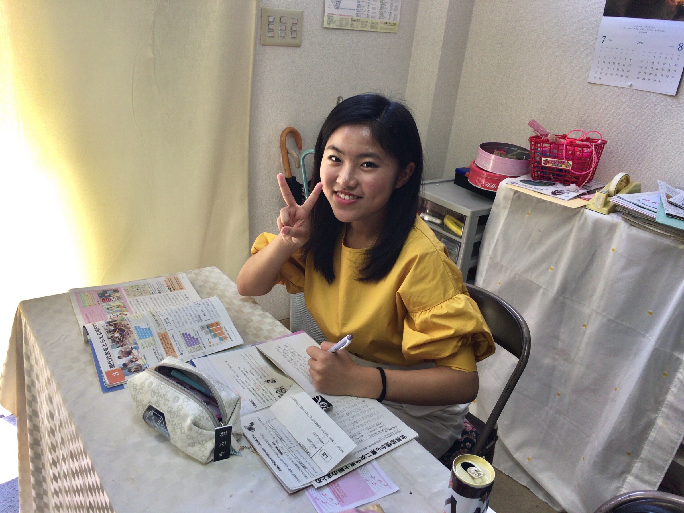 祈祷会中、長女は宿題中。