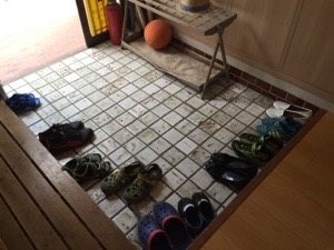 軽く朝食食べたり、ゲームしたり子供達、1日のスタートです。