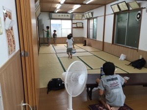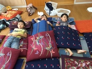 子供達は、座布団並べ、キャンプだそうです。白馬温泉にきたそうです。
