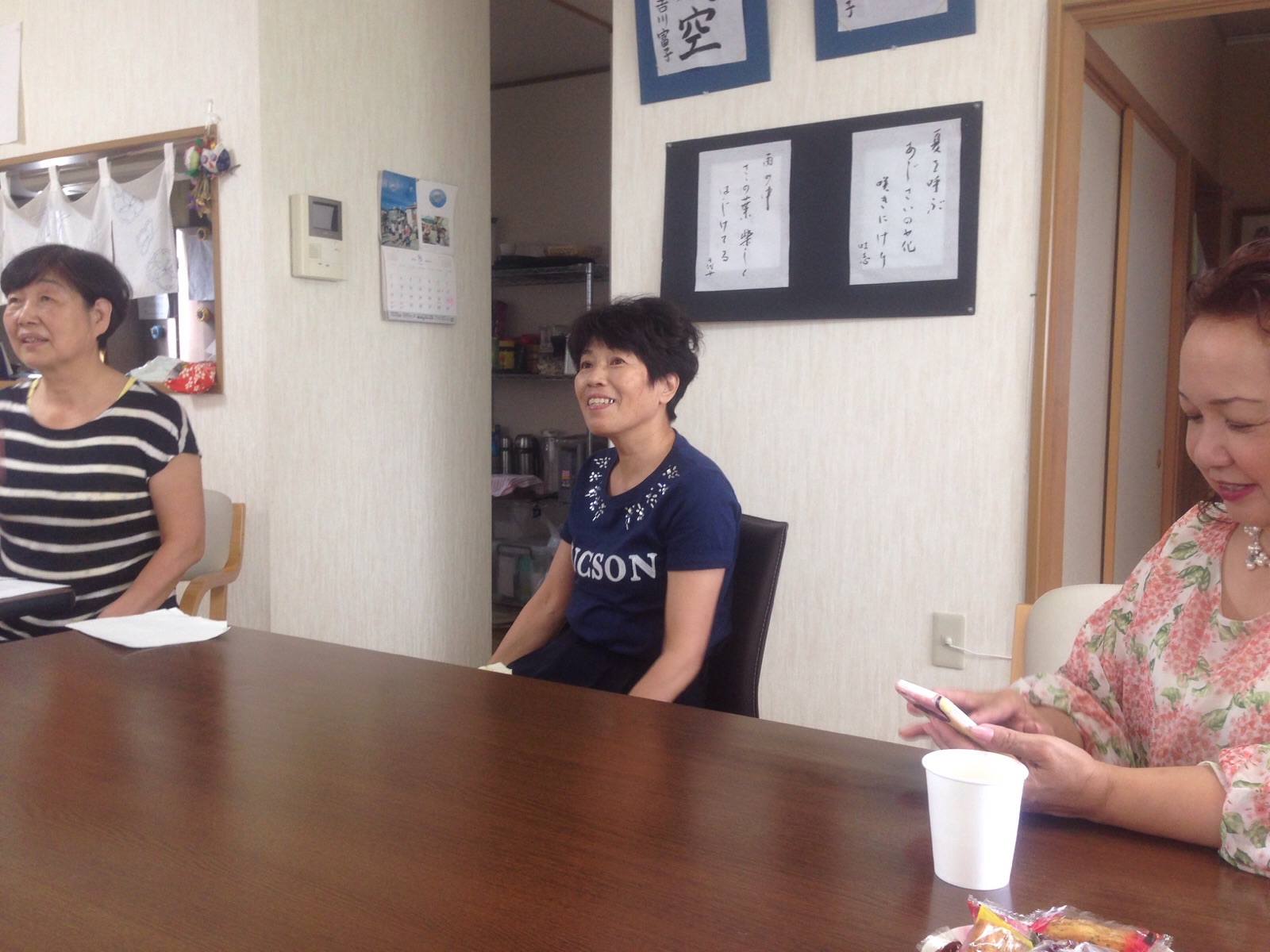 平和のつどいのゴスペルの話しをしています。 ハプニングで、アカペラでしたが、それが良かったという感想でした♬ エルサレム千多