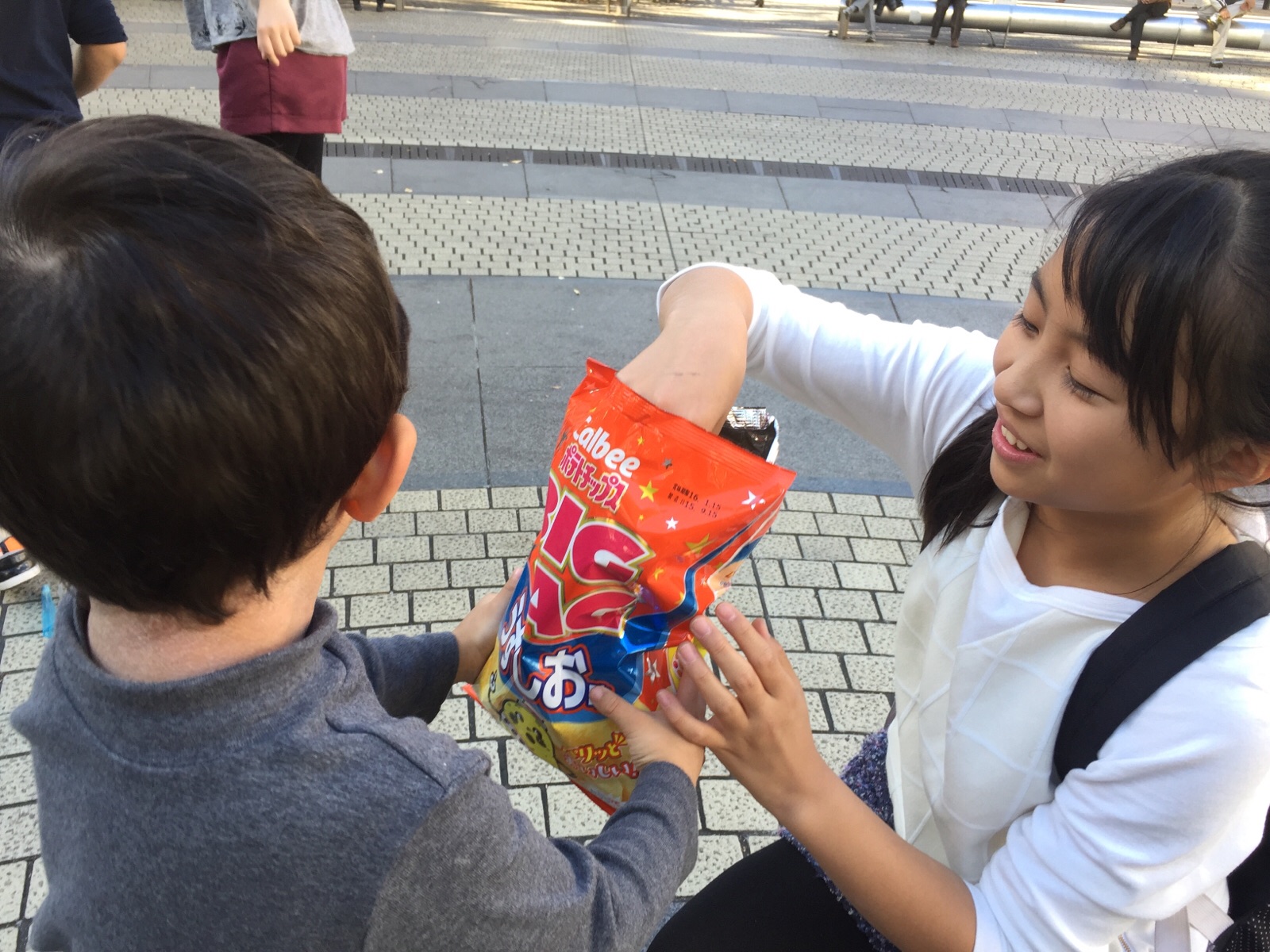 よっちゃんが選んだ、ポテトチップス!(^ ^) 分けてあげています!Beracha