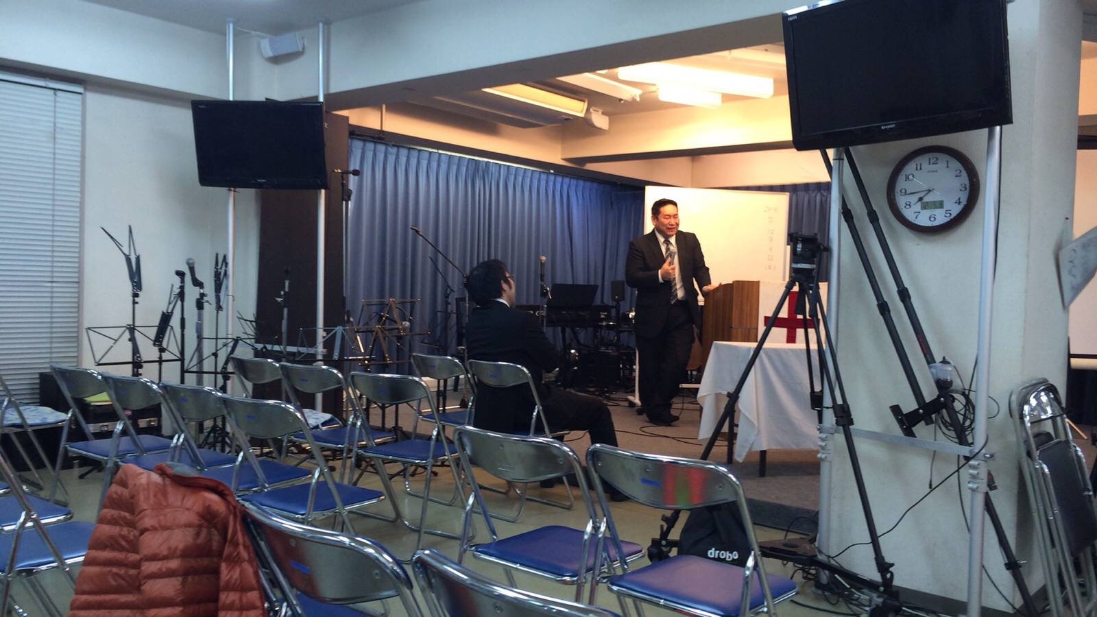 土曜礼拝スタート(^ー゜)スタッフのみなさん。私も礼拝参加(^ー゜)ラベイユゆみ♪