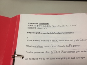 今日は神学校の英会話の授業で、「いつくしみ深き」を英語で歌いました。 日本語訳とはだいぶ歌詞がちがっていて驚きでした!